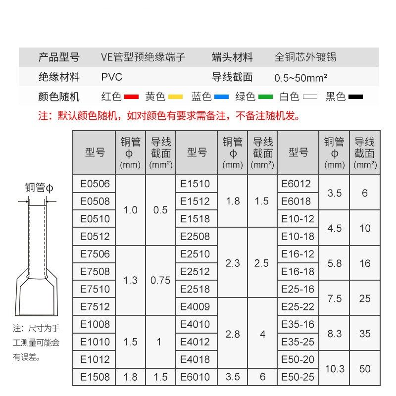 VE管型冷压接线端子套装铜鼻子收纳盒电线接头压线钳开关面板插针
