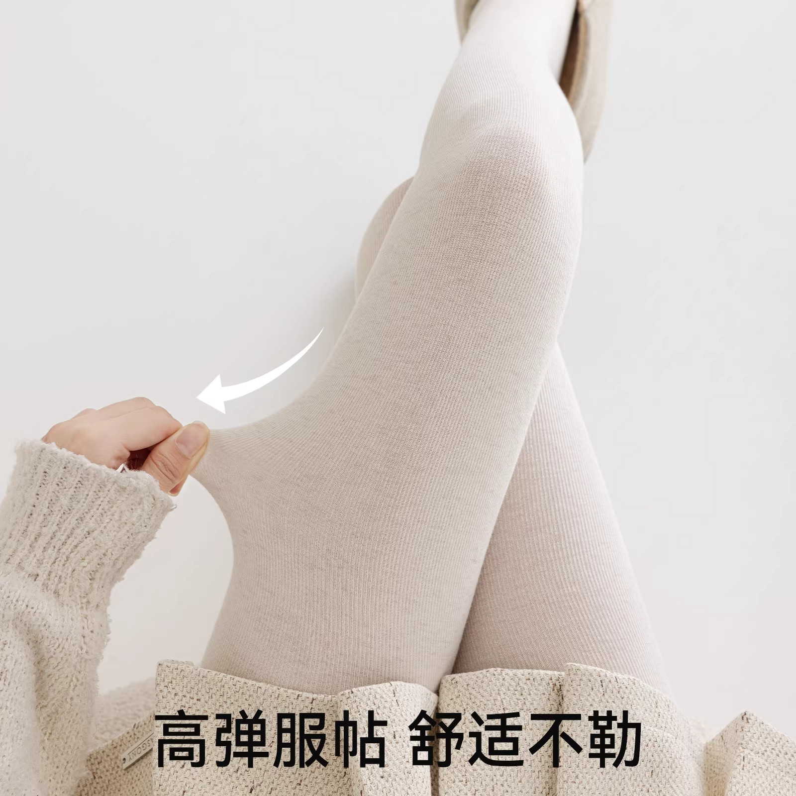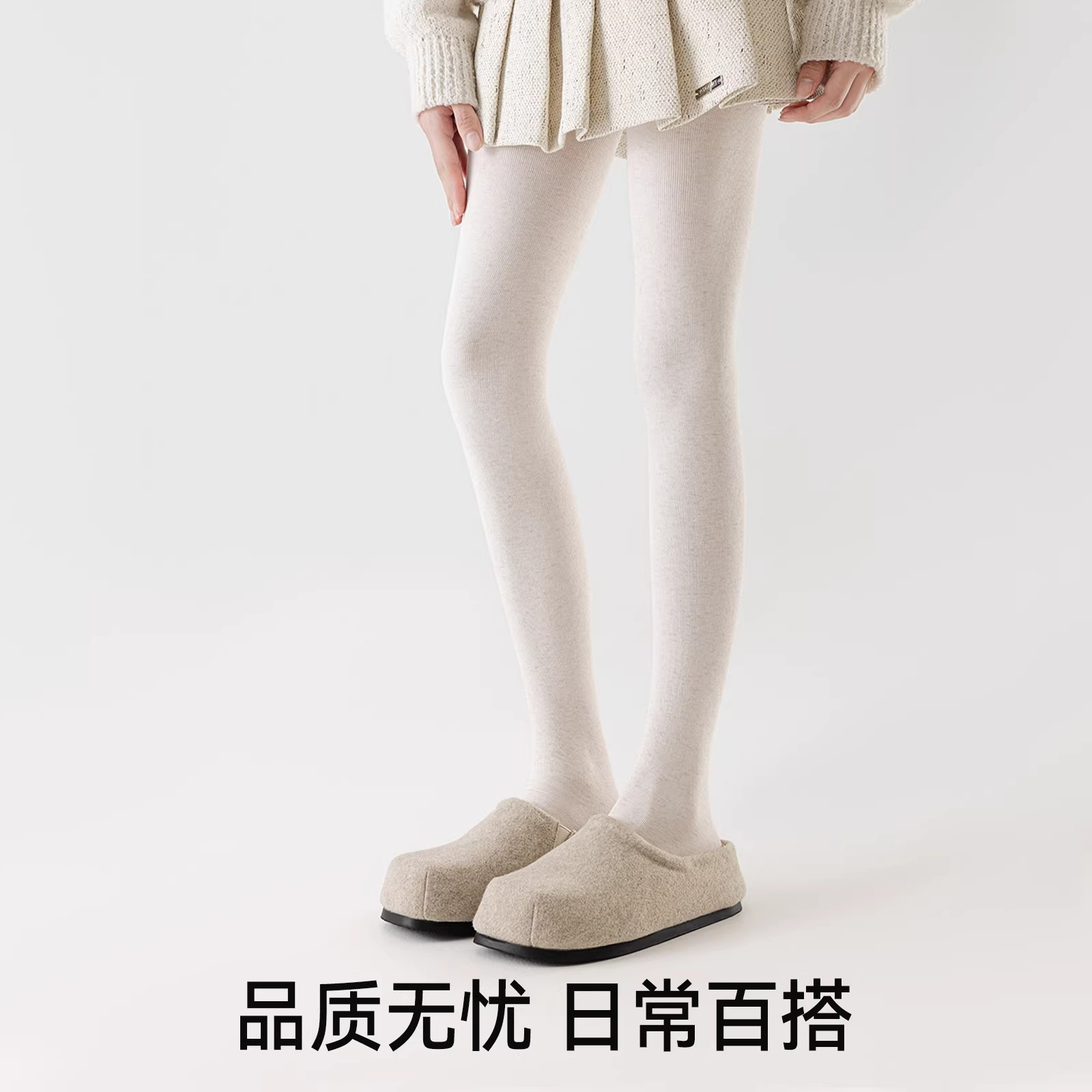 燕麦白色打底裤女秋冬加厚2025新款日系甜美连裤袜外穿压力显瘦腿