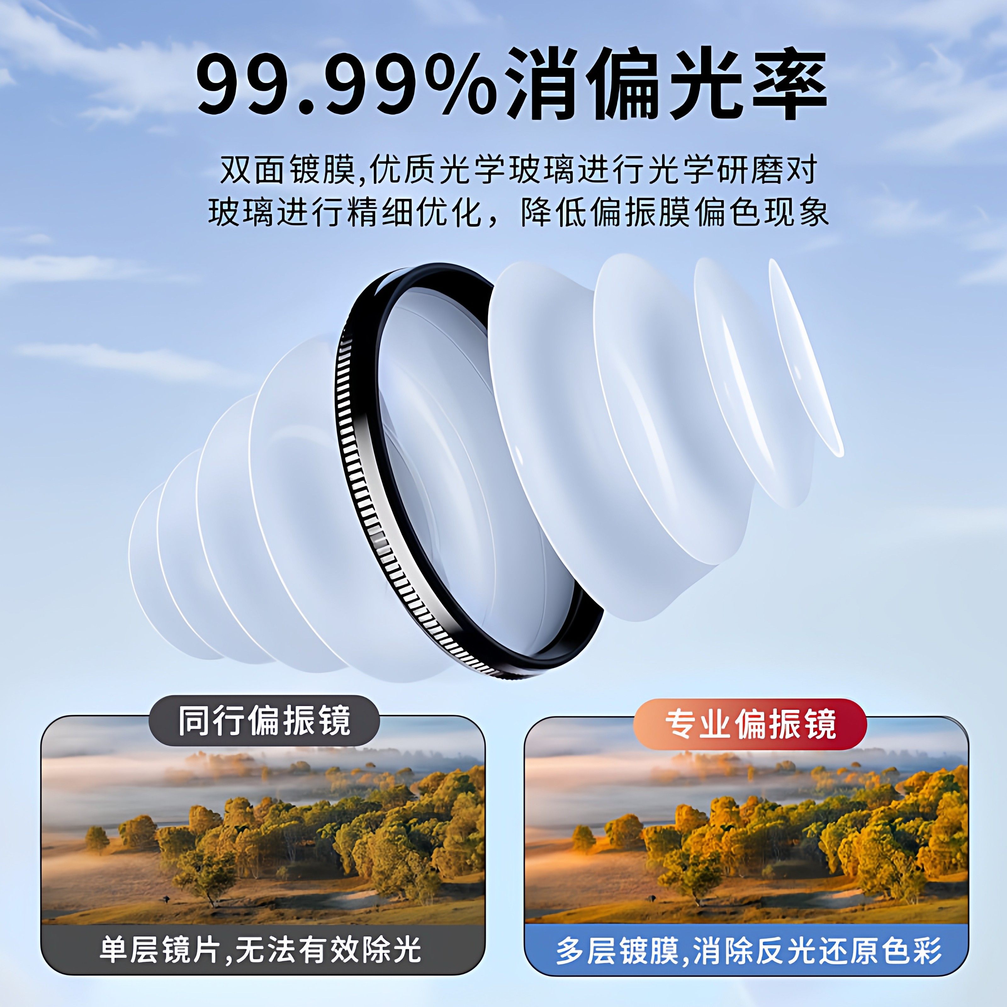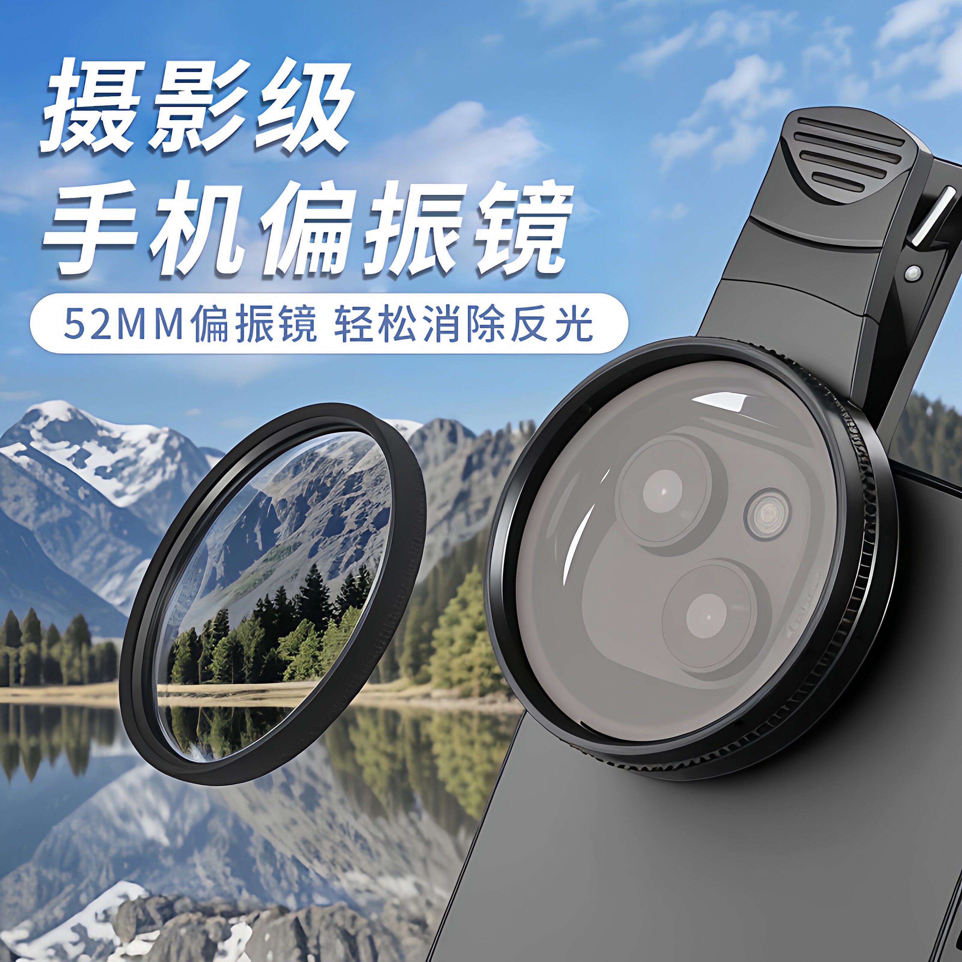 手机偏振镜专用摄影滤镜拍照高清专业cpl偏光镜通用52mm辅助拍摄