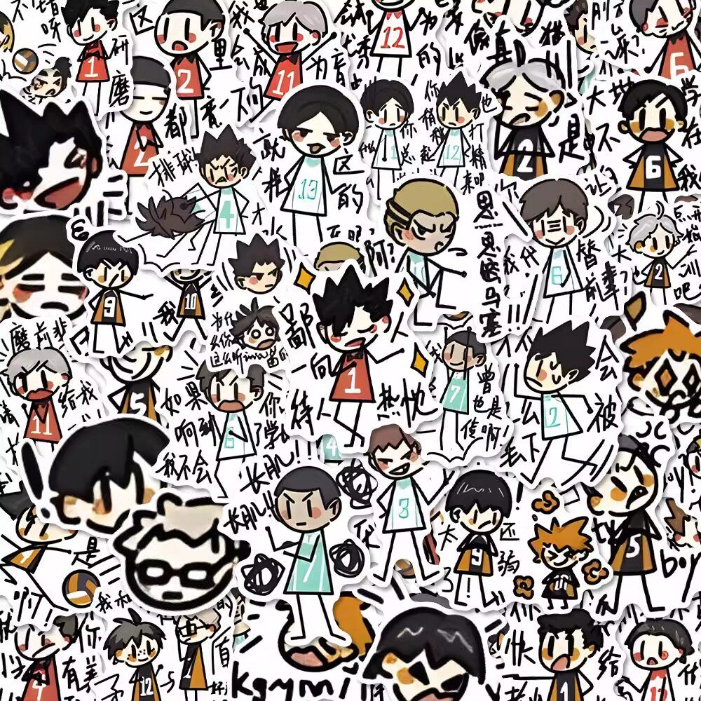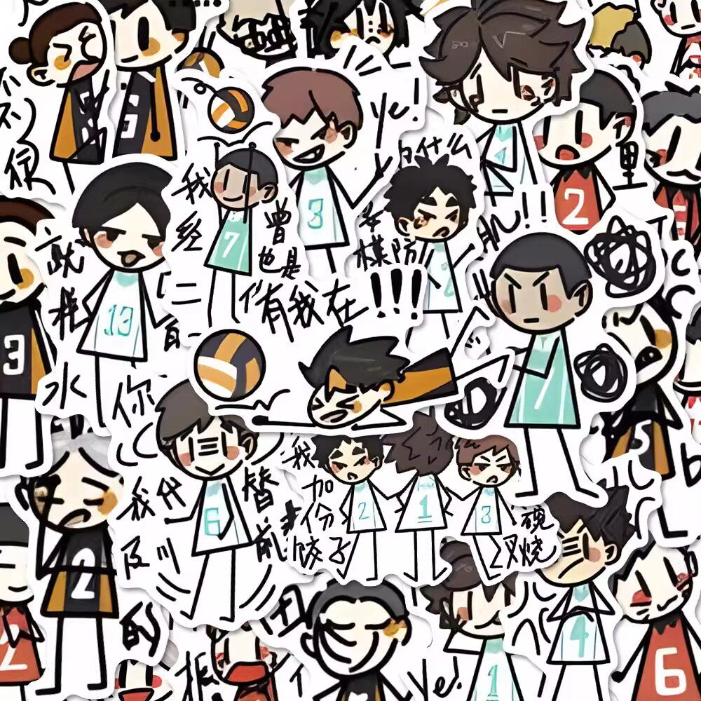 58张可爱线条排球少年周边贴纸二次元热血动漫创意手机小贴画防水