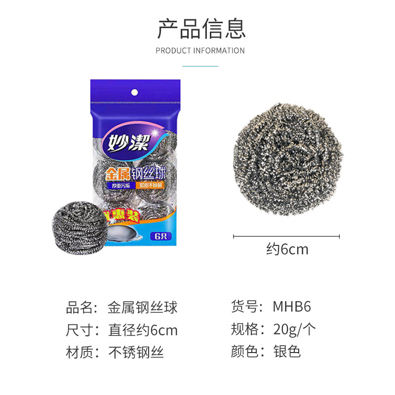 妙洁钢丝球家用清洁球不掉丝厨房洗碗刷锅不锈钢铁丝球金属刚丝球