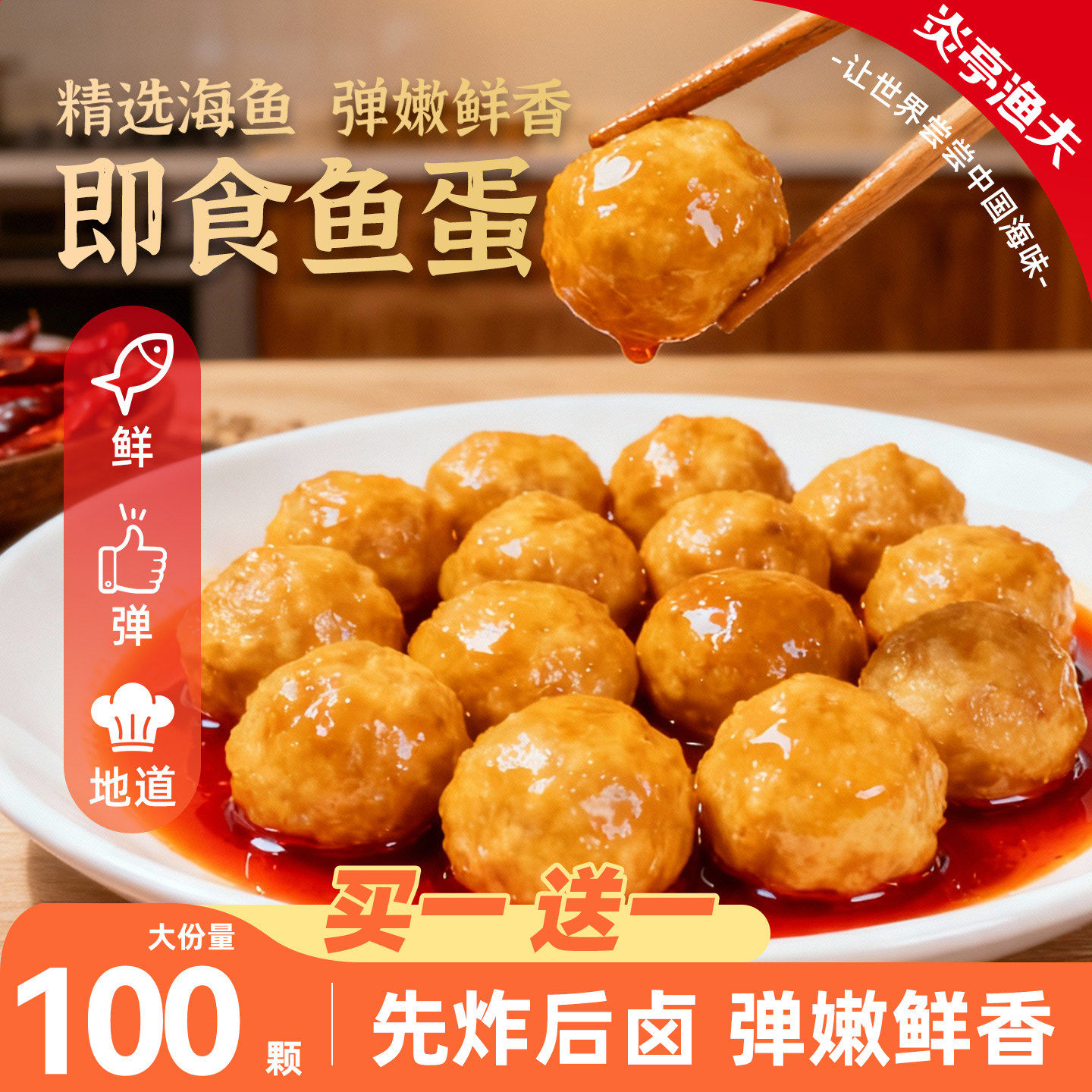 炎亭渔夫Q弹鱼蛋即食休闲解馋小零食港式鱼丸子小吃办公室夜宵