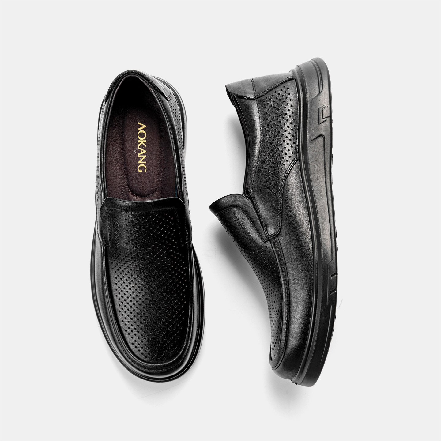 奥康官方男鞋春秋季真皮商务休闲皮鞋时尚套脚平底脚蹬舒适爸爸鞋