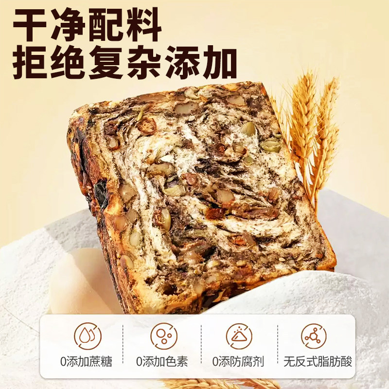 全麦坚果厚切吐司面包早餐整箱无减速食肥添糖专用健康零食品美味