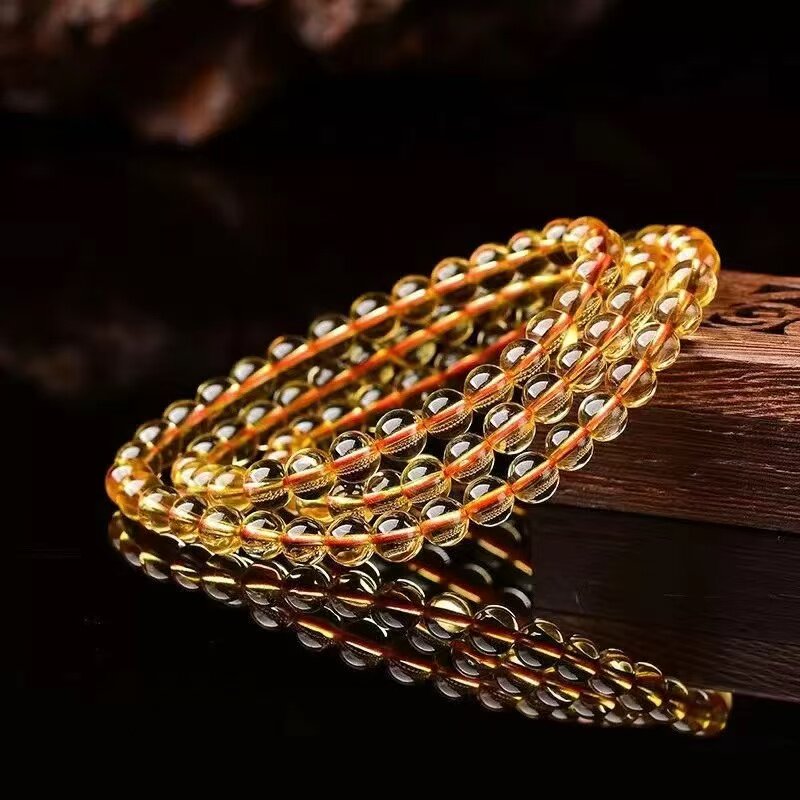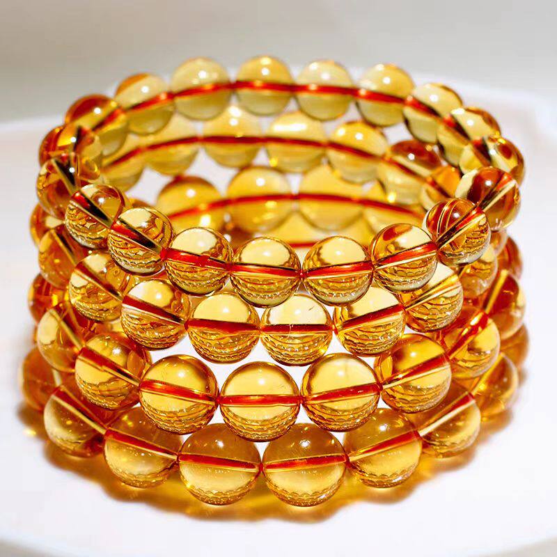 爆款仿巴西黄水晶手链貔貅款金橘黄清透手串手珠饰品招财三圈旺财