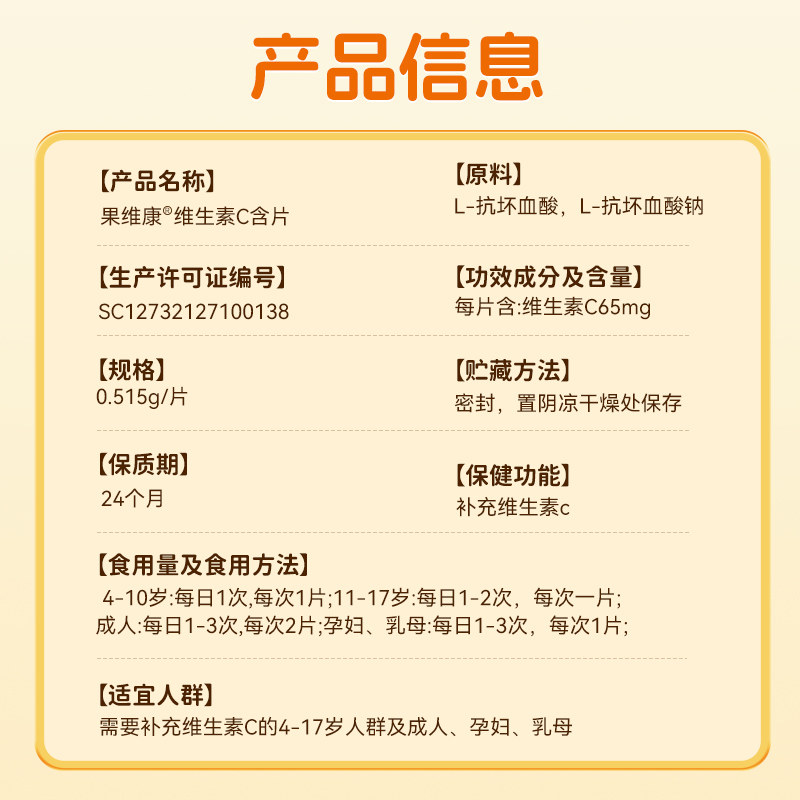 石药果维康儿童维生素C含片青少年维C成人学生VC咀嚼片康维橙子味
