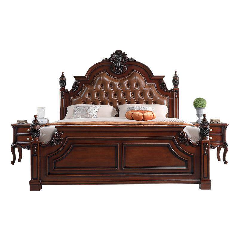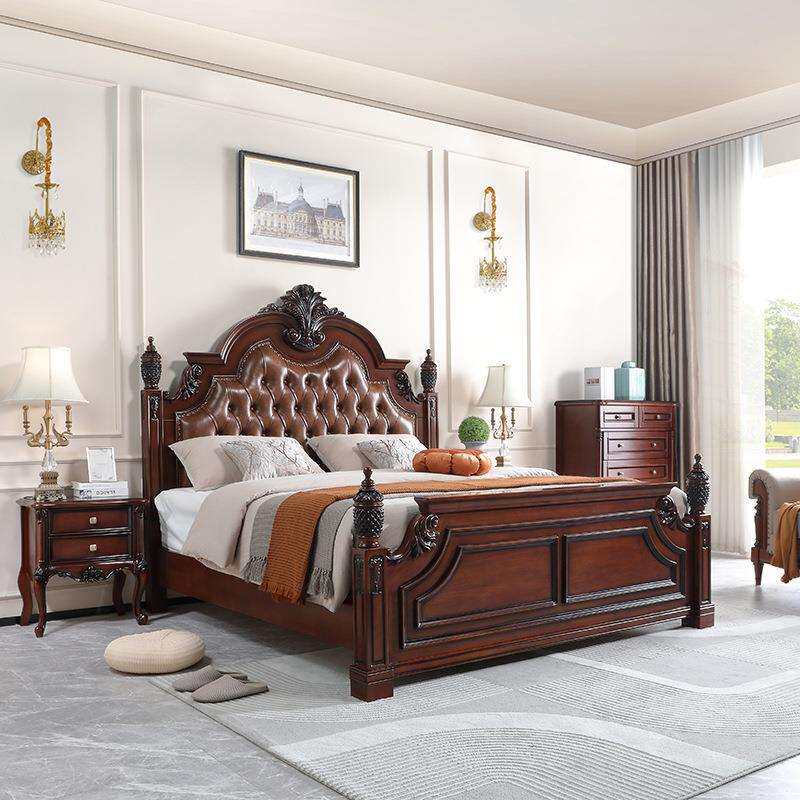 美式床1.8米实木大床1.5橡木双人气动储物卧室家具组合复古胡桃床