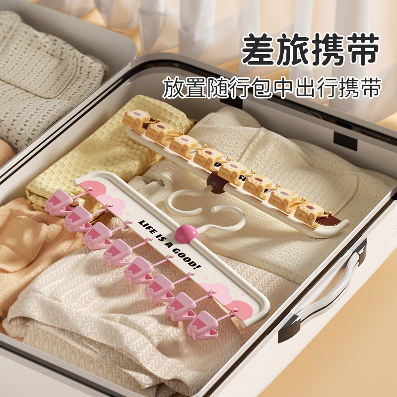 旅行折叠衣架便携式布艺晾晒衣夹子旅游出差酒店出游内衣袜子挂架