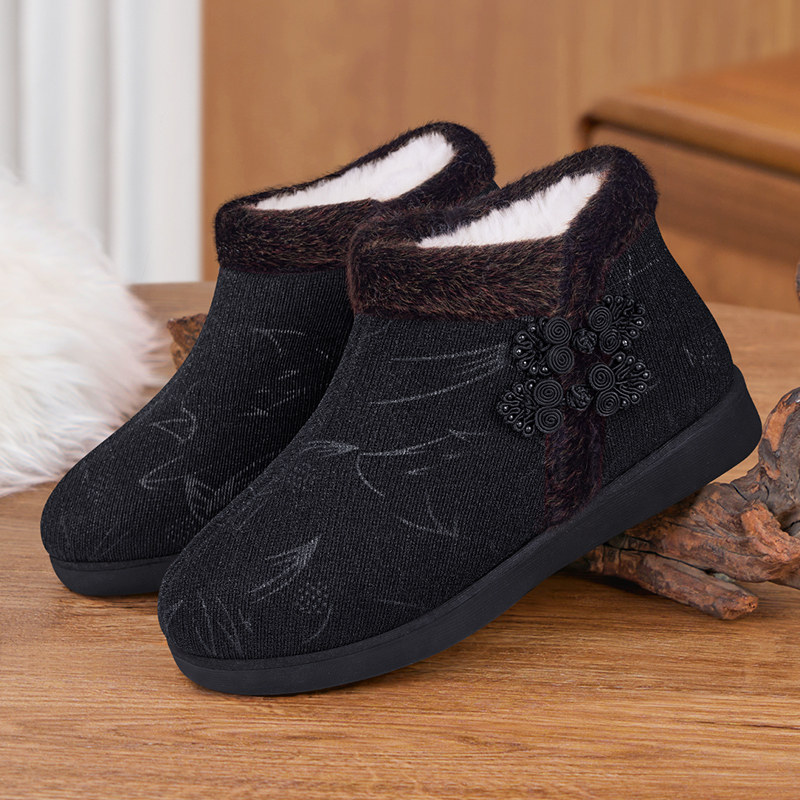 棉鞋女冬季加绒加厚保暖皮毛一体中老年棉靴软底妈妈鞋防滑防水