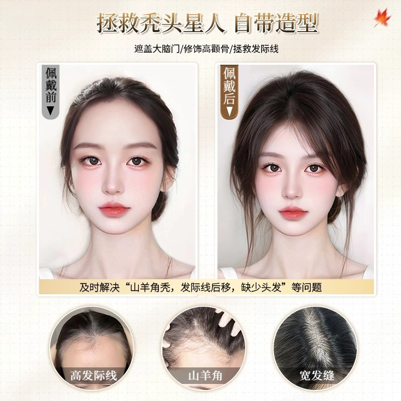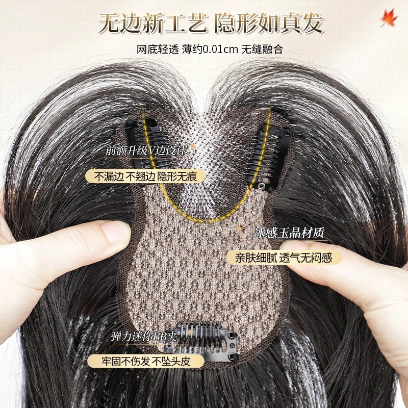 假发女片头顶补发仿真发遮白发蓬松颅顶增发量自然前额无痕补发片