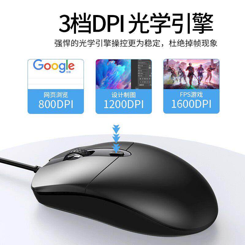 有线鼠标静音家用USB无声办公台式笔记本电脑商务电竞游戏鼠标