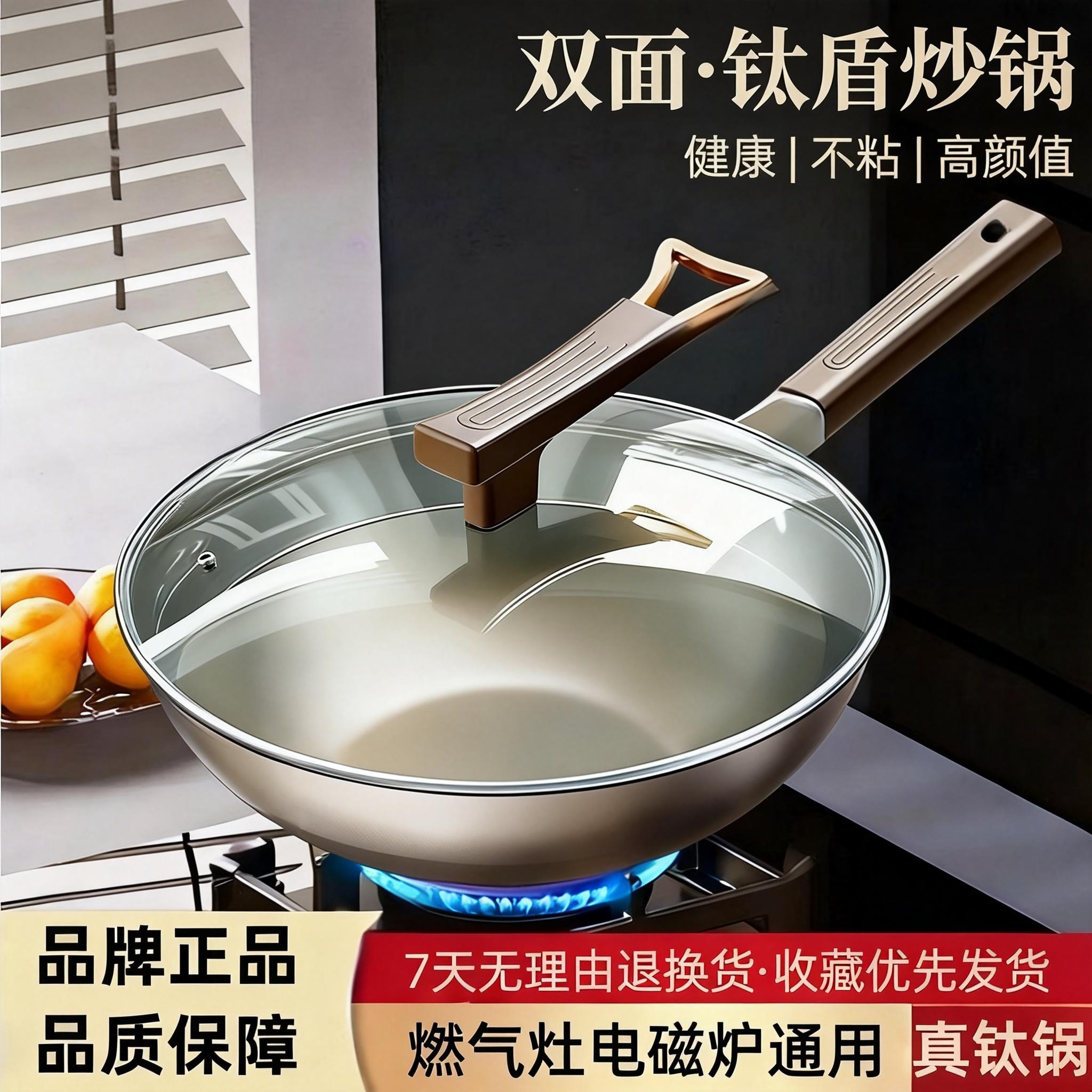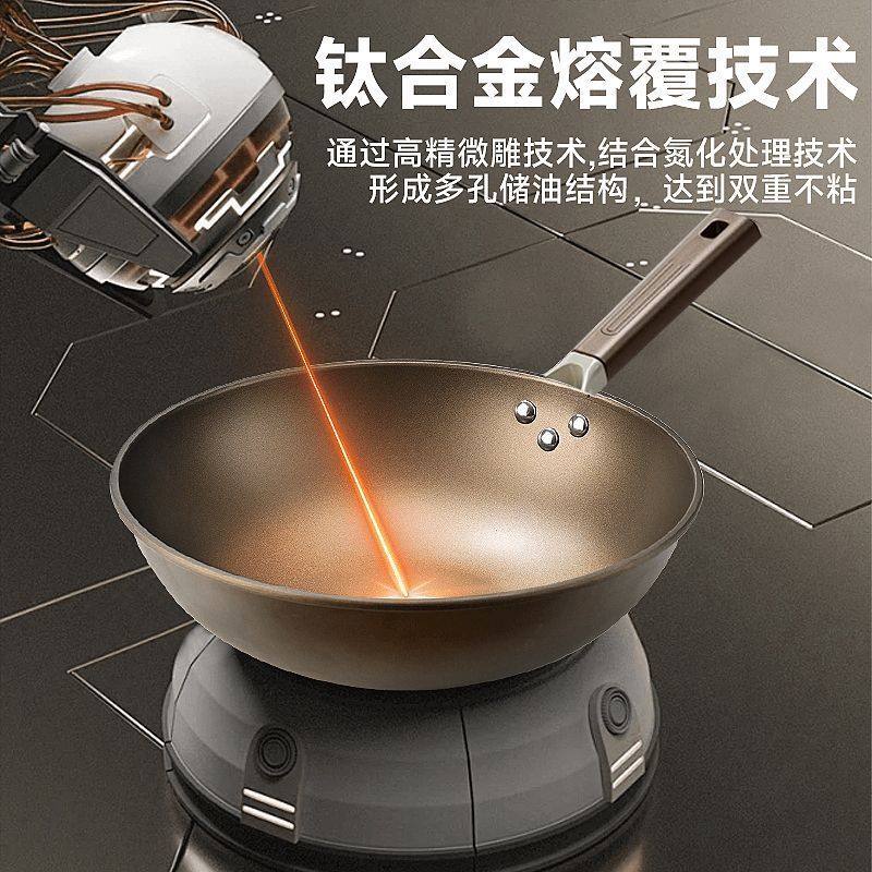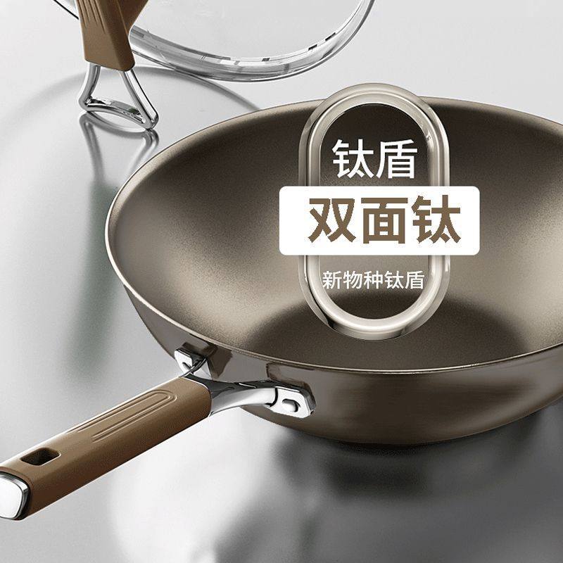 Ti钛锅不粘锅家用炒菜锅钛盾有钛炒锅加厚平底锅电磁炉燃气灶通用
