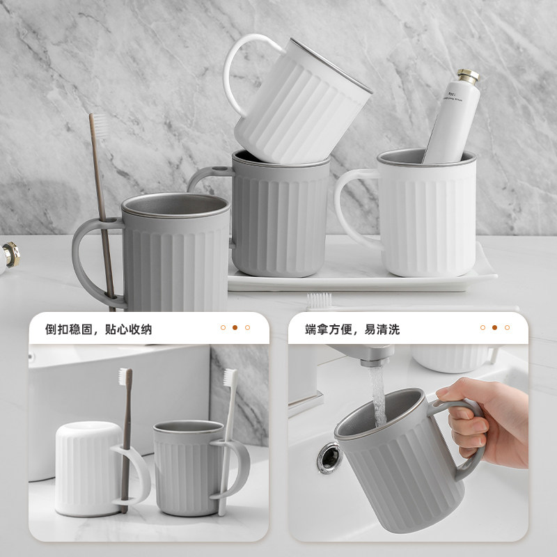304不锈钢洗漱口杯防霉刷牙水杯子带手柄家用ins牙刷大容量金属