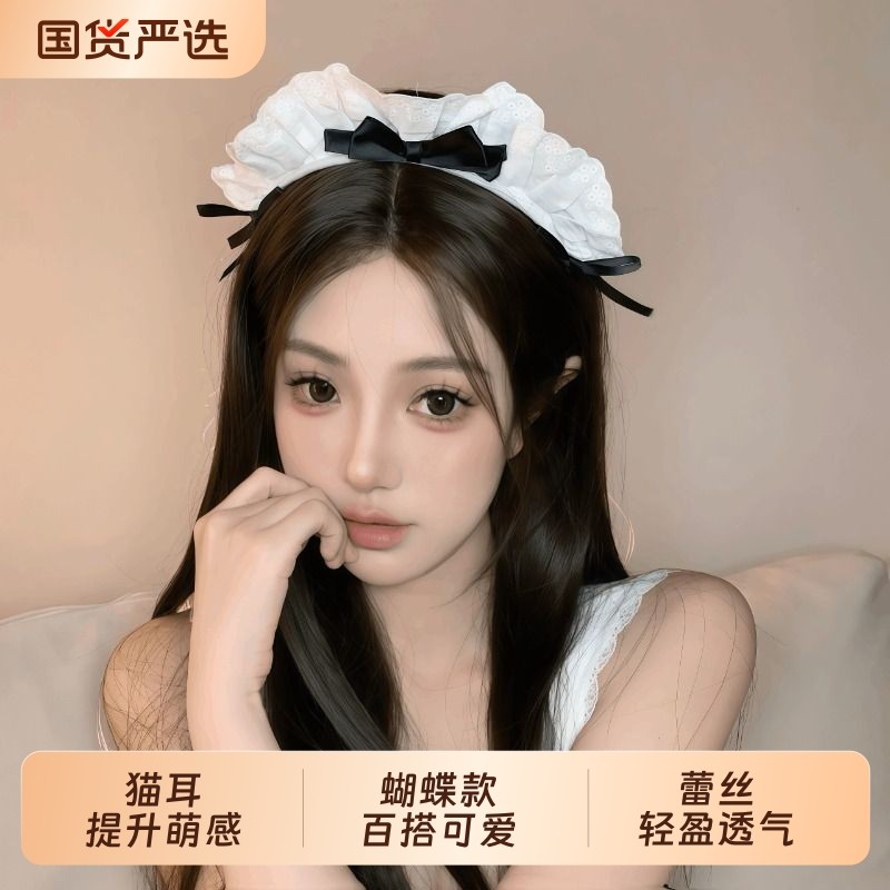 蕾丝蝴蝶结猫耳发箍女仆发饰cosplay可爱兽耳Lolita猫咪头箍头饰