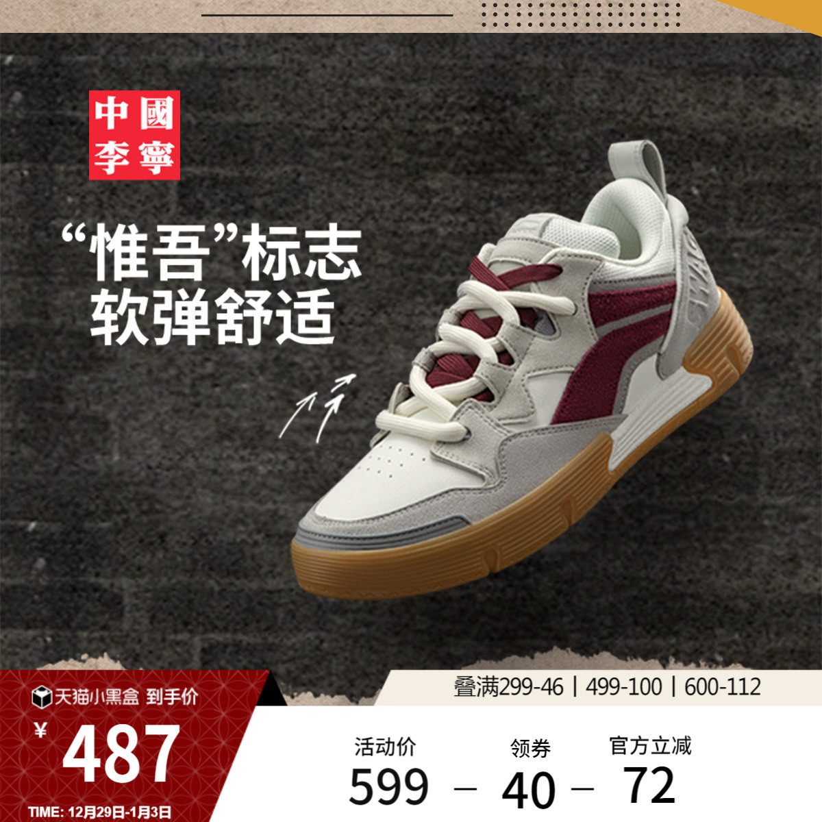 中国李宁SWAG BOOM滑板鞋男鞋女鞋秋冬新款情侣滑板鞋低帮运动鞋