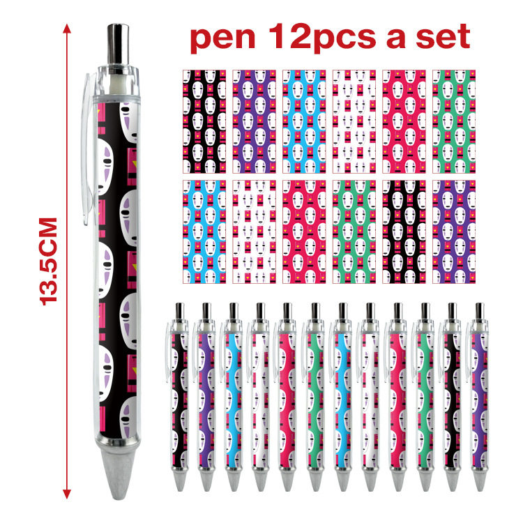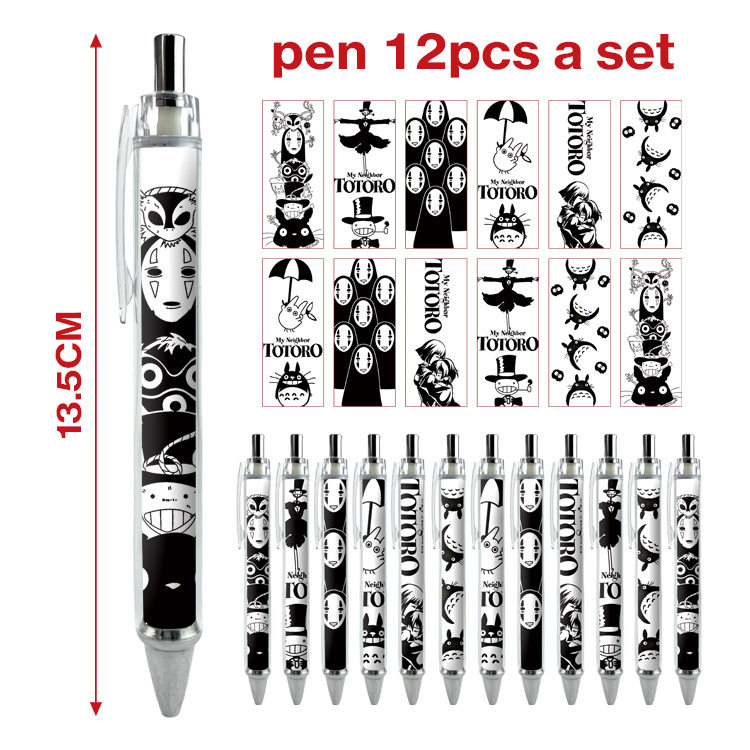 龙猫无脸男周边圆珠笔套装 卡通动漫印花文具中性笔(12支套装)