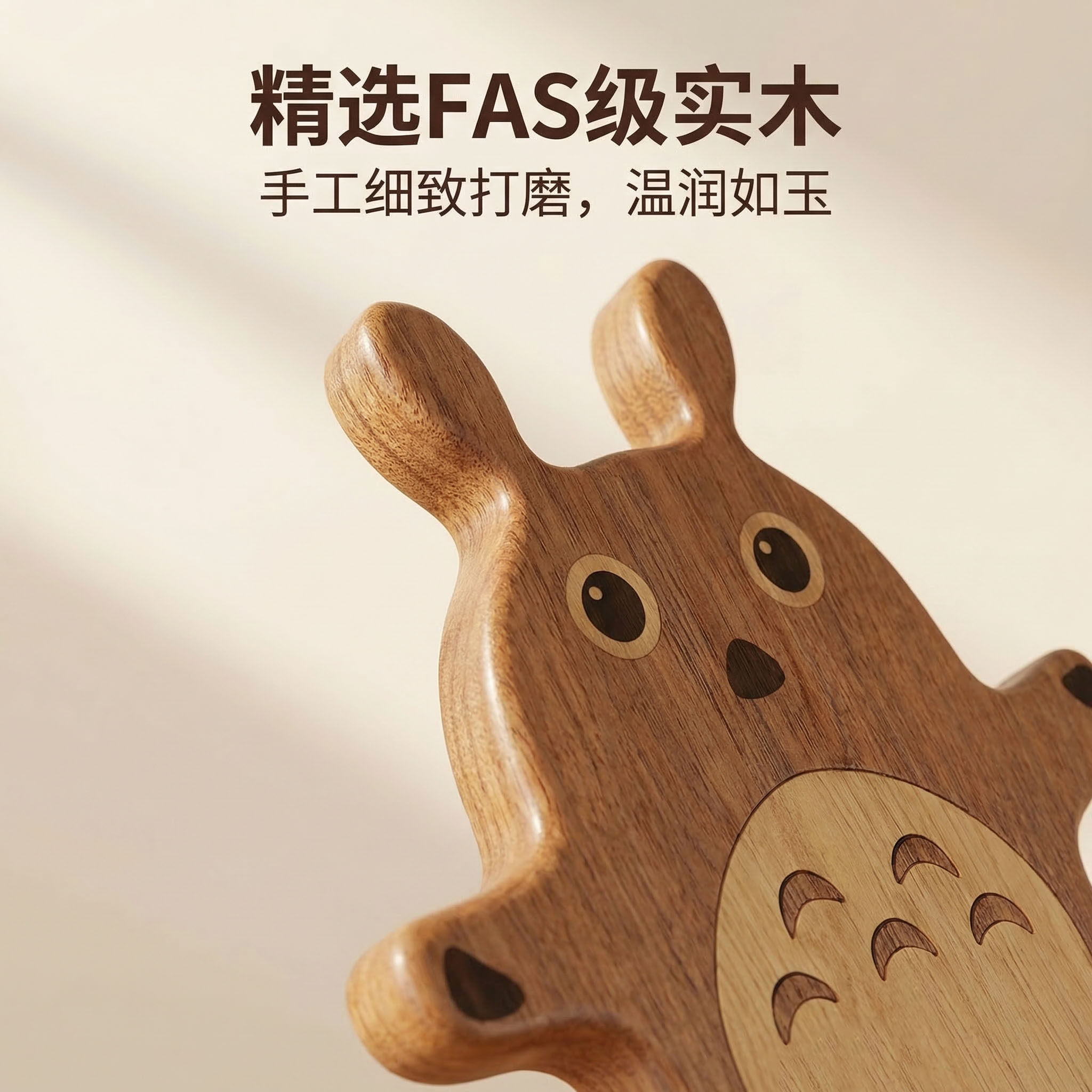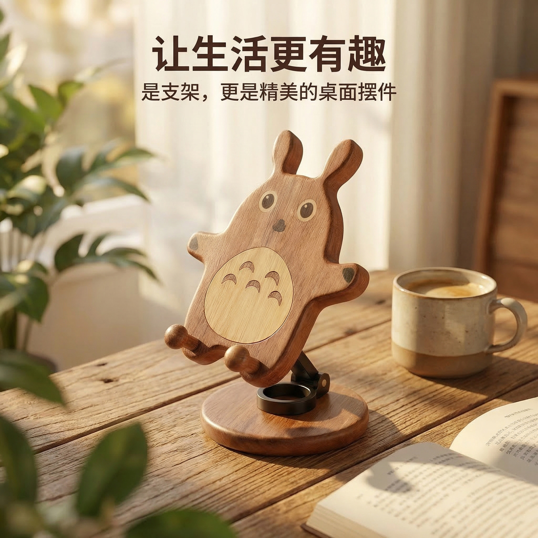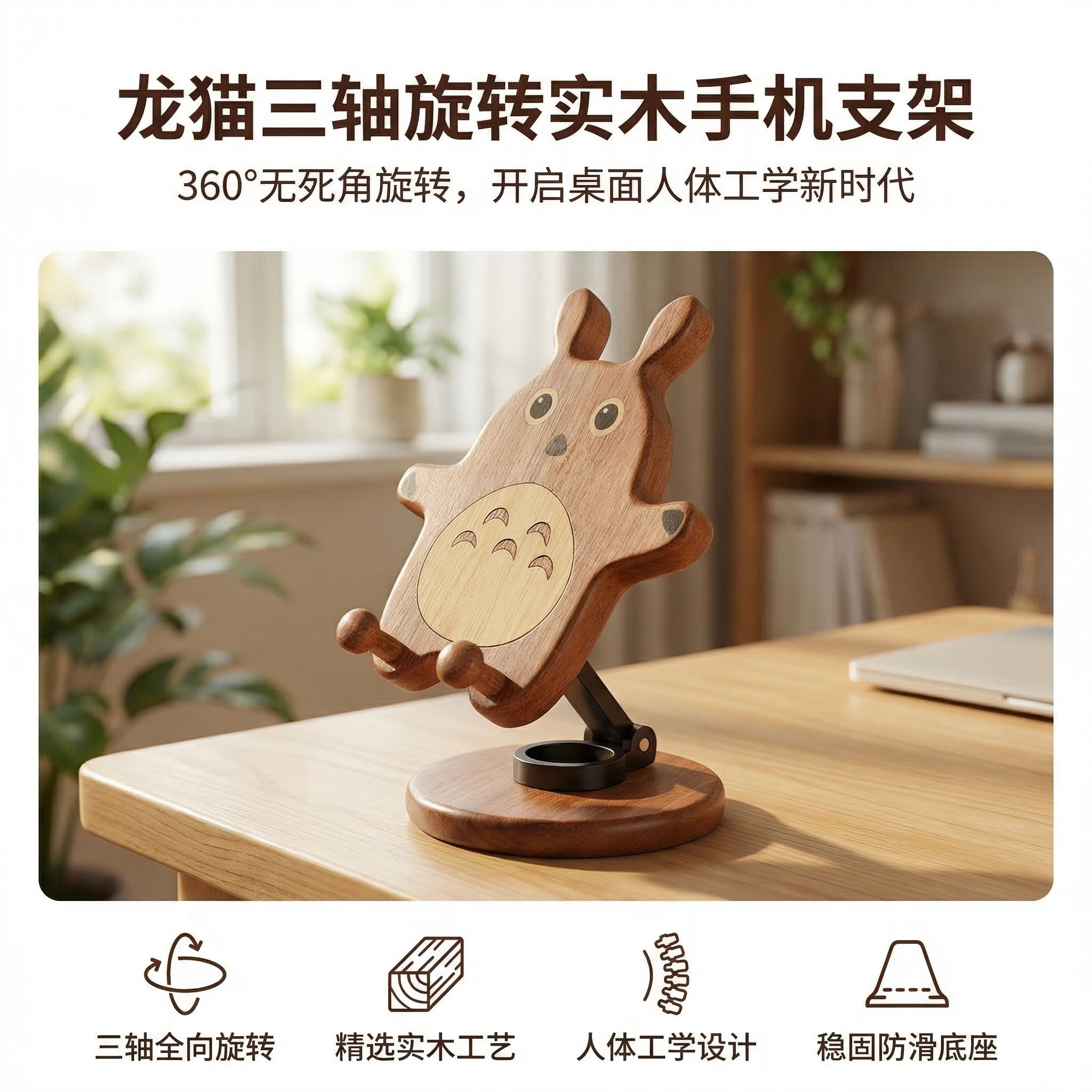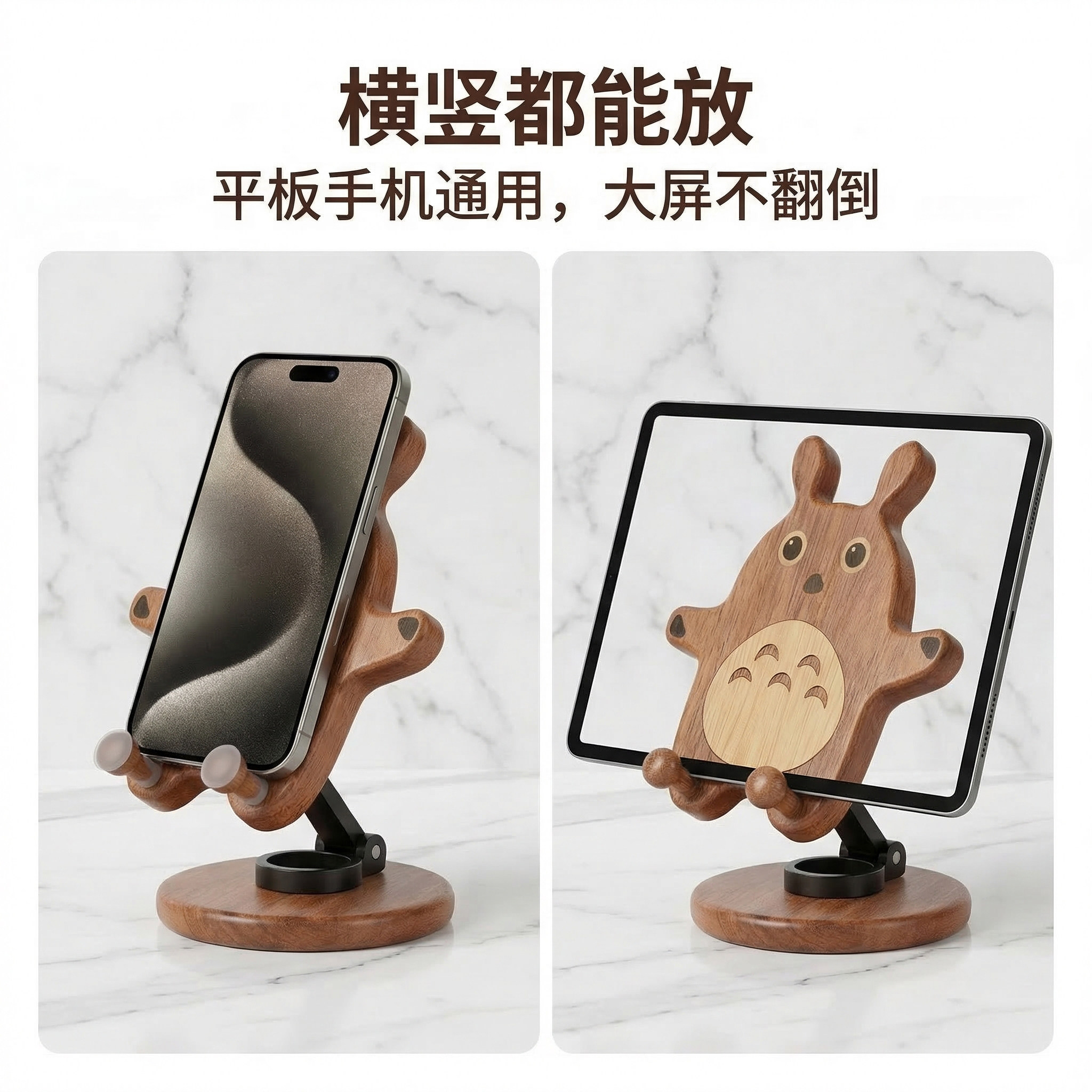 胡桃木手机支架龙猫桌面平板手机可旋转实木通用便携二合一手机座