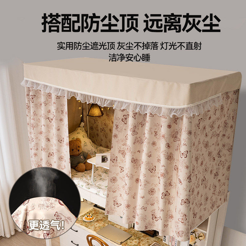 小清新强遮光床帘学生宿舍上下铺印花床幔下桌遮挡布免拼接支架新