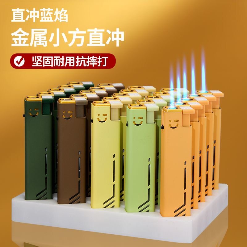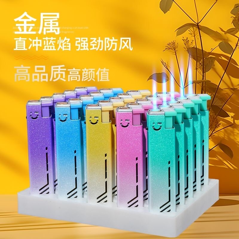 创意蓝焰直冲防风防爆可充气印字打火机家用批发火机颜值金属点火