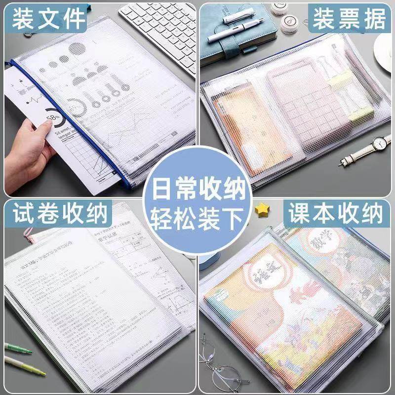 网格文件袋加厚透明网格拉链袋A4试卷收纳袋学生用考试文具袋防水笔袋办公用品批发公文档案袋资料袋包邮