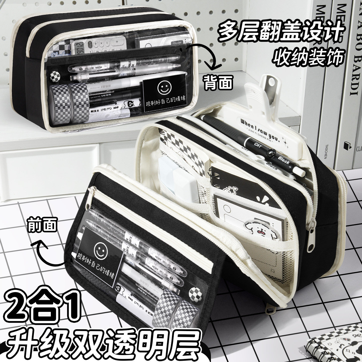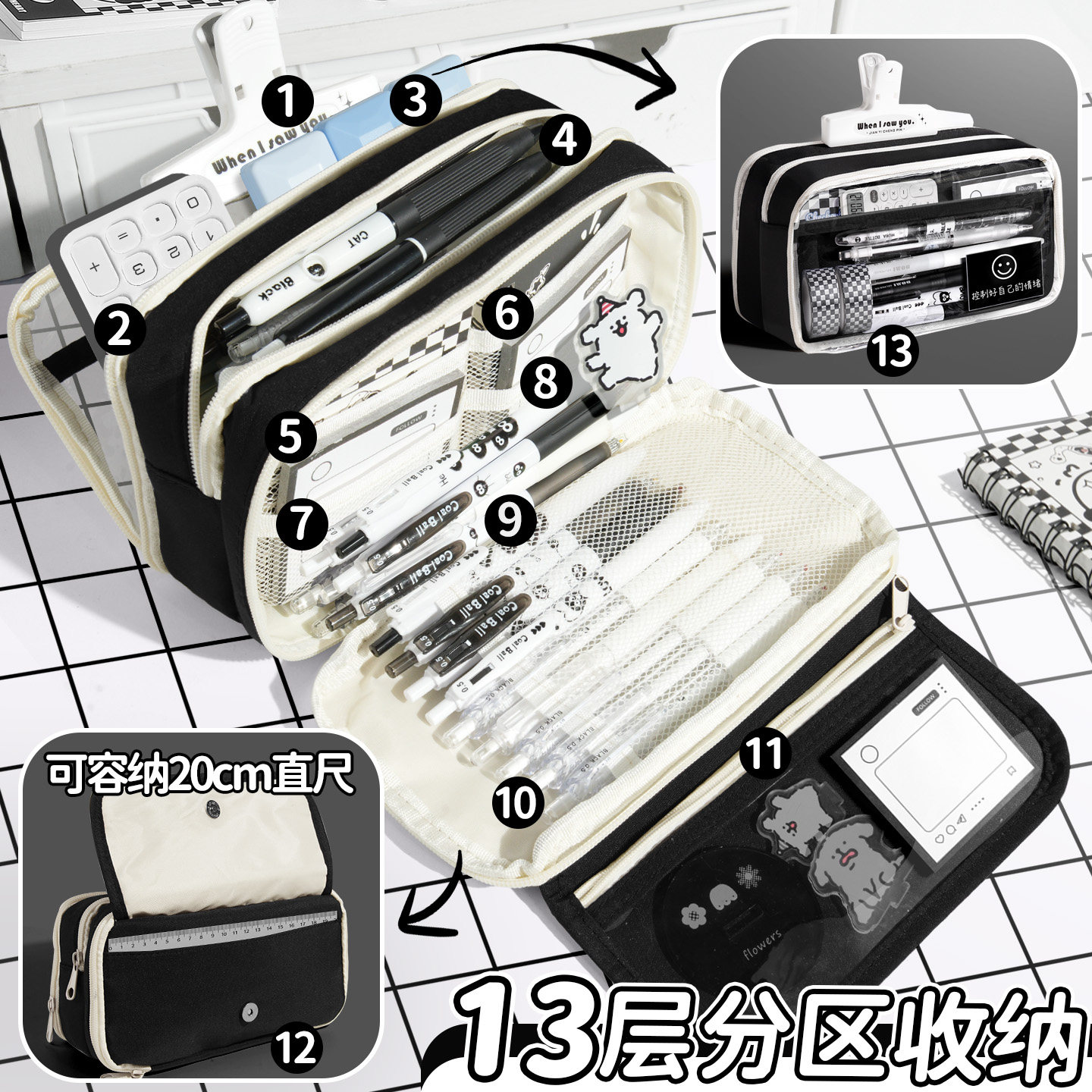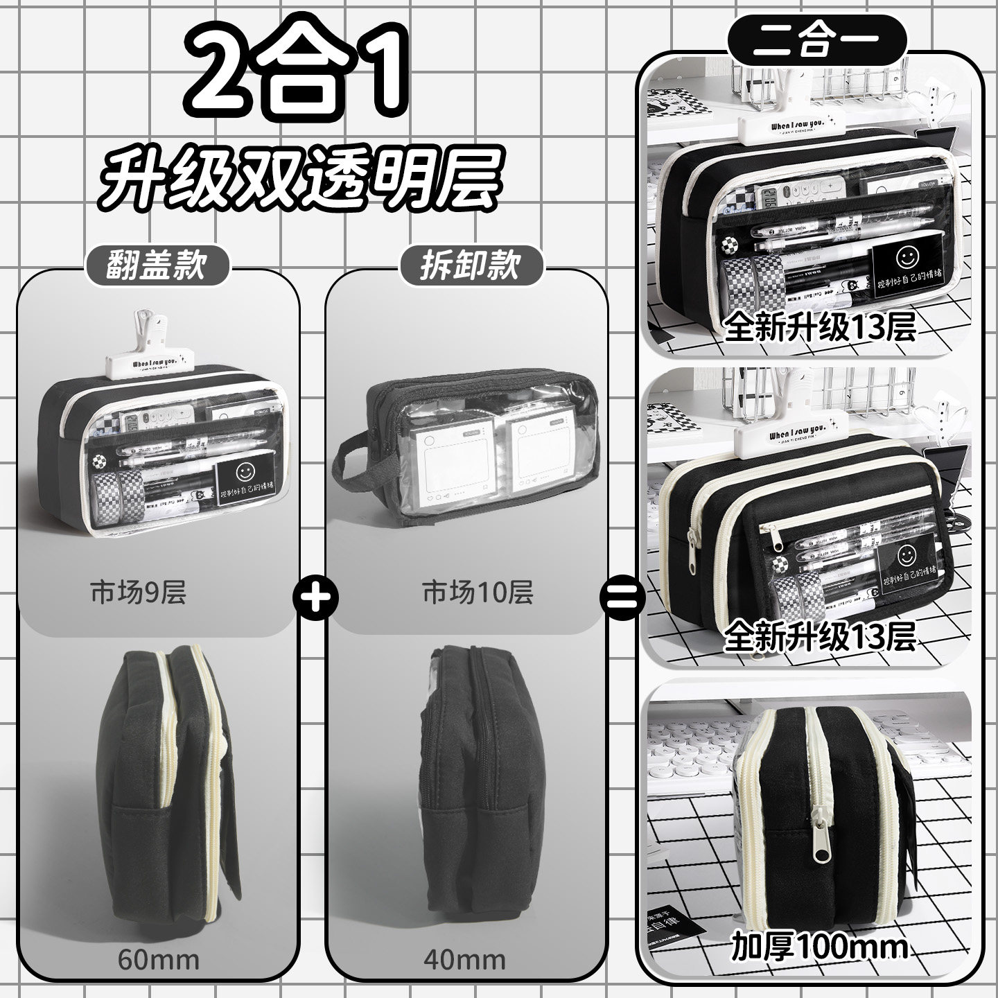 13层超大容量笔袋男孩款2026新款文具盒男生初高中生黑色铅笔盒小学生女生简约高颜值ins铅笔袋不撞款文具袋