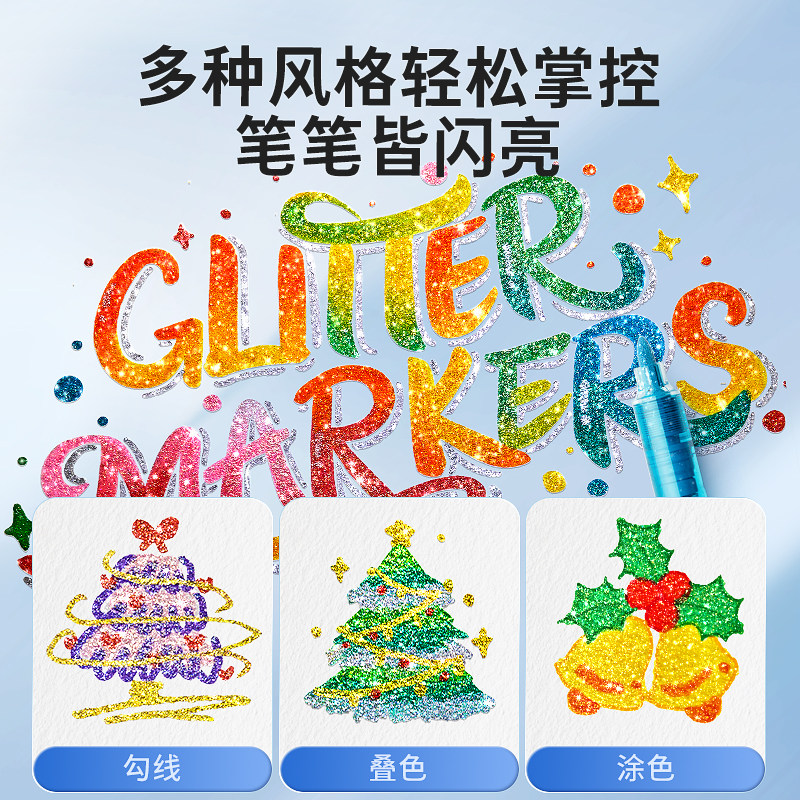 安格尔闪光马克笔笔荧光带闪粉闪闪荧光笔闪粉水彩笔记号笔珠光绘画亮片彩笔儿童学生专用彩绘手账笔炫彩笔