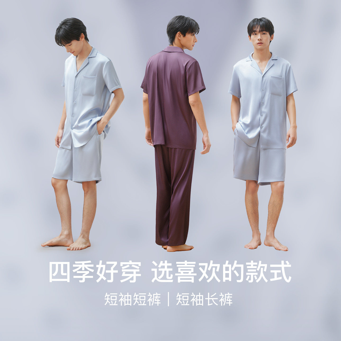 猫人水光丝睡衣男女款2026新款夏季情侣冰丝可外穿家居服凉感透气