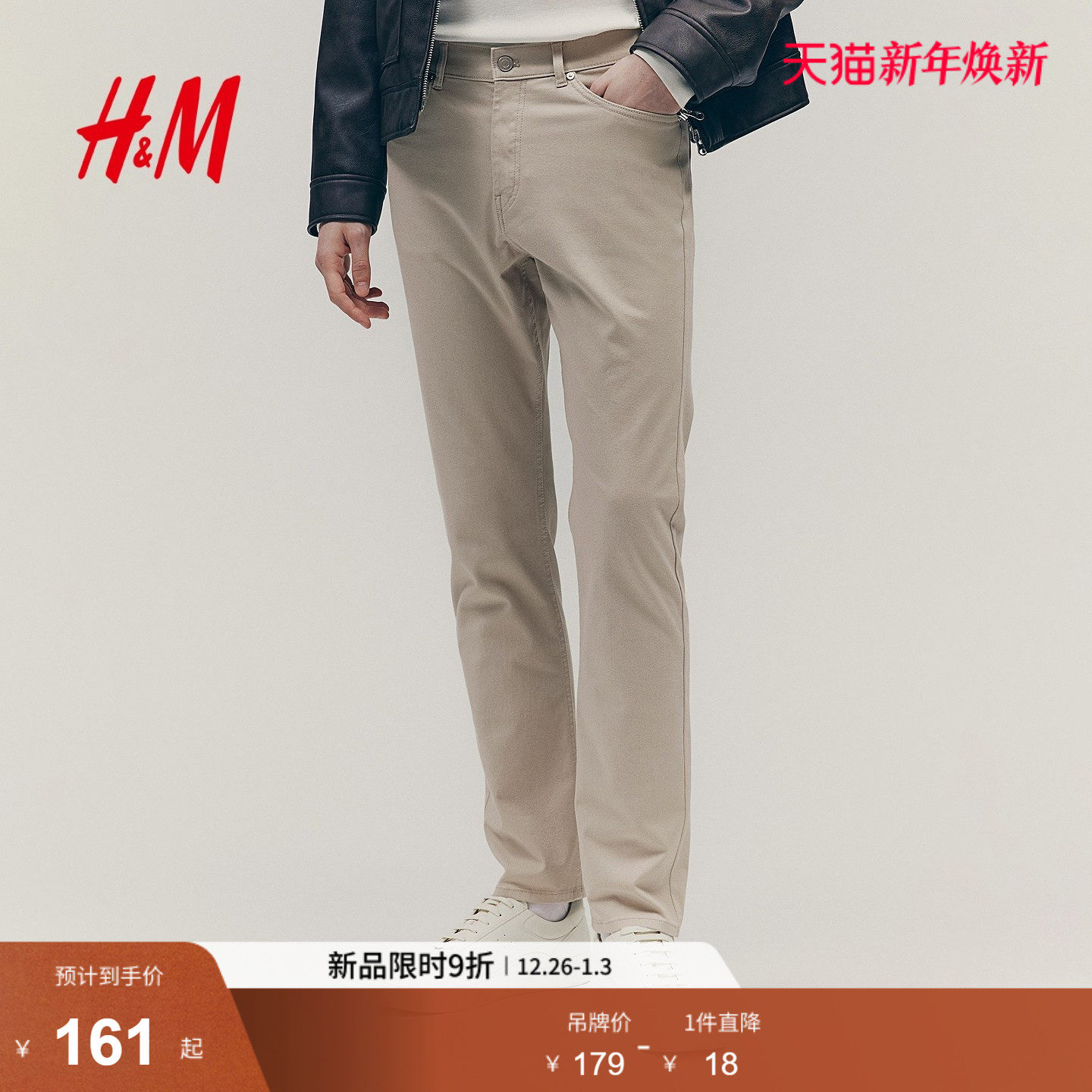 HM男装休闲裤冬季斜纹通勤时尚休闲棉布简约英伦合身长裤1074402