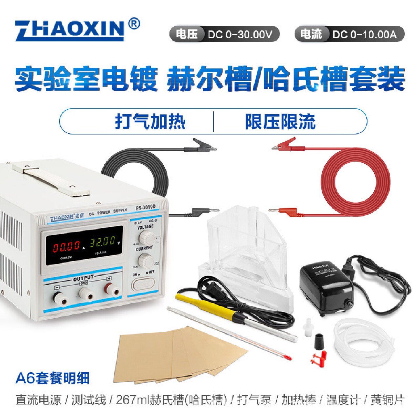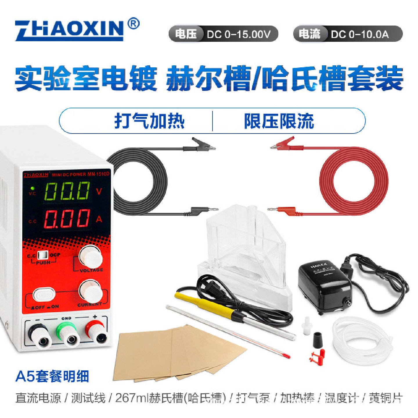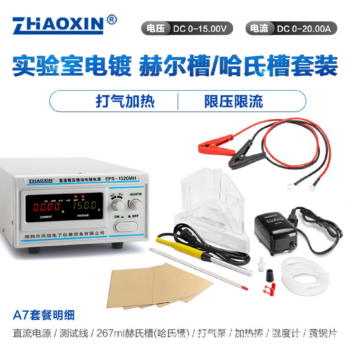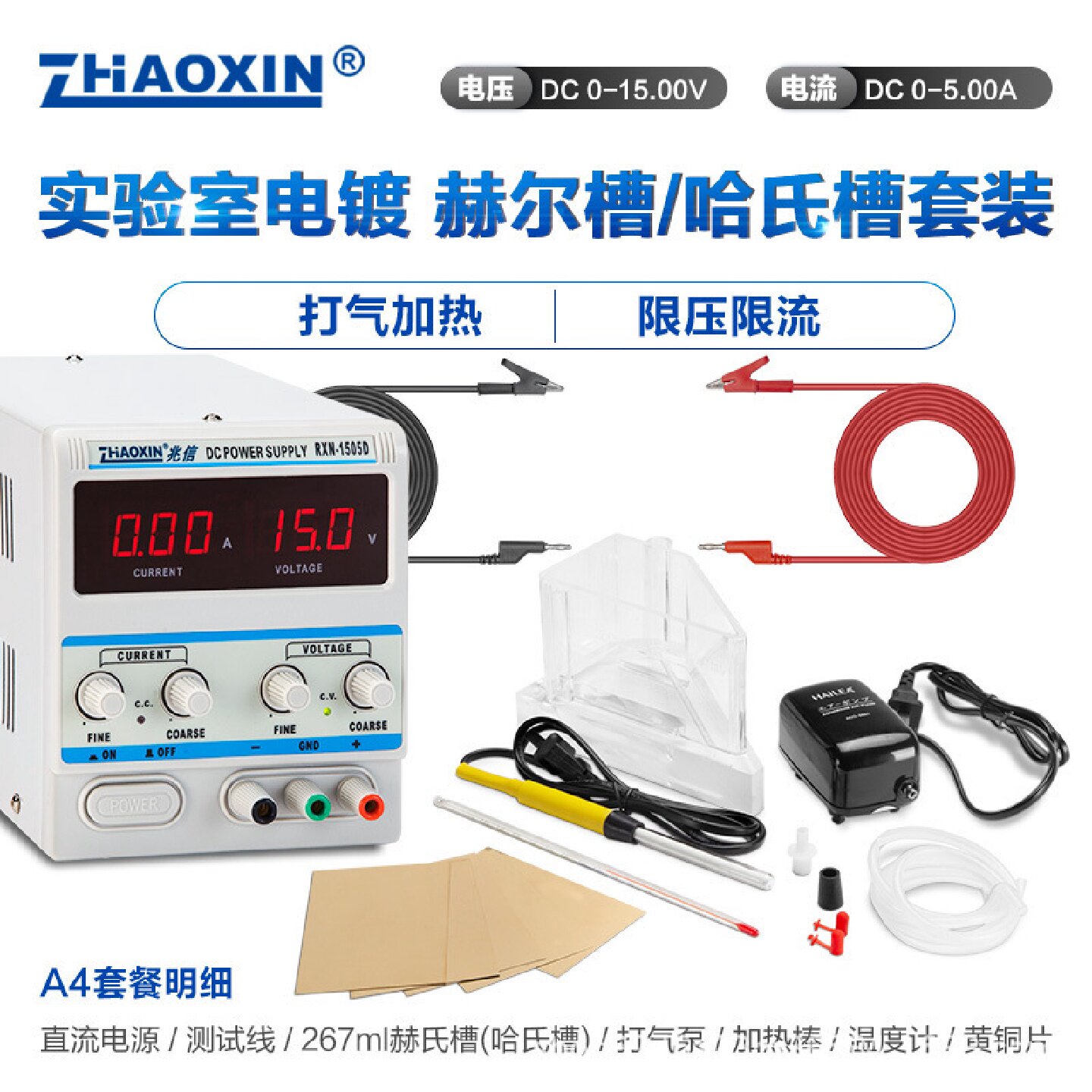 寻I兆信哈氏槽赫尔槽哈林槽实验专用电镀电源加热棒打气泵套装