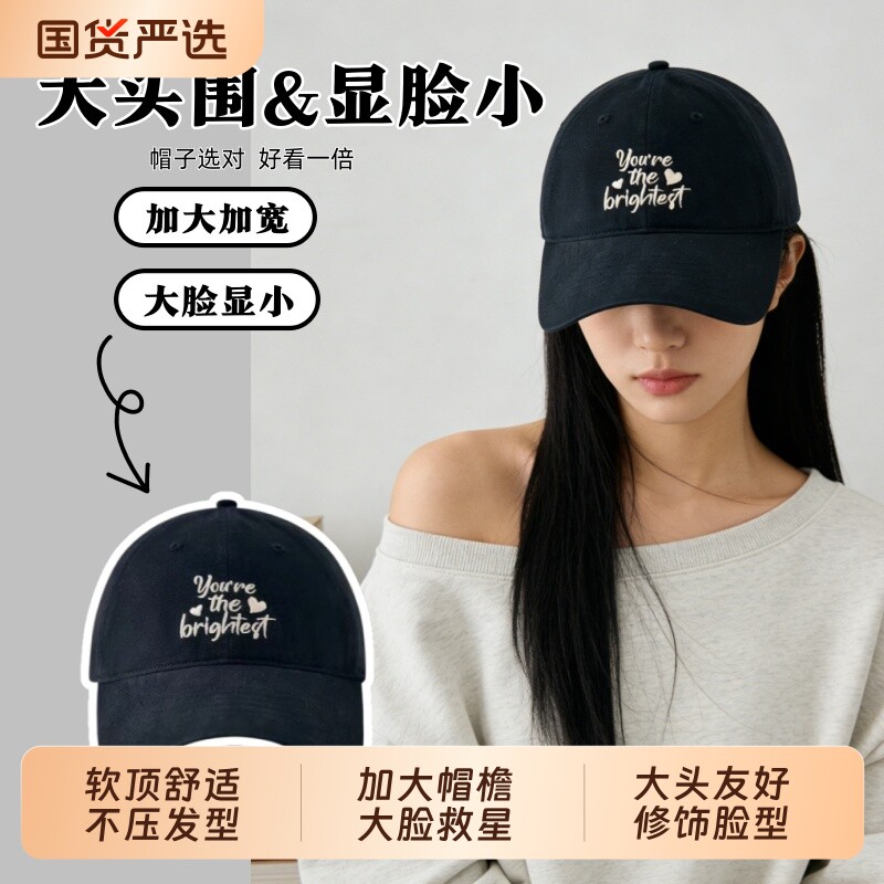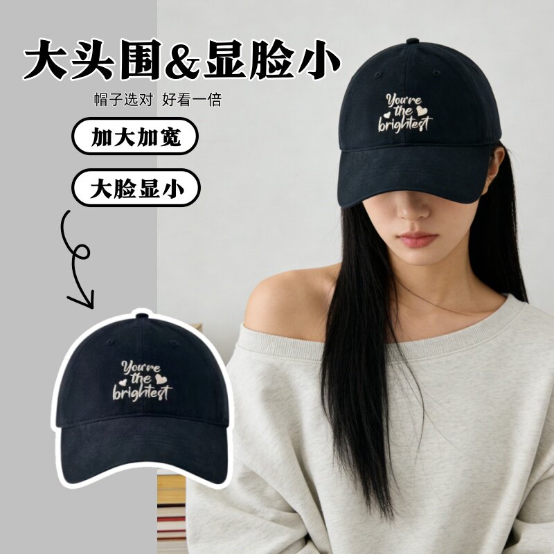 美式复古字母灰色棒球帽女高级感宽檐大头围显脸小百搭鸭舌帽子男