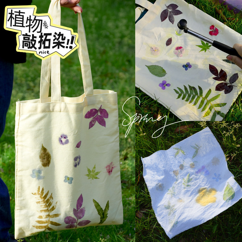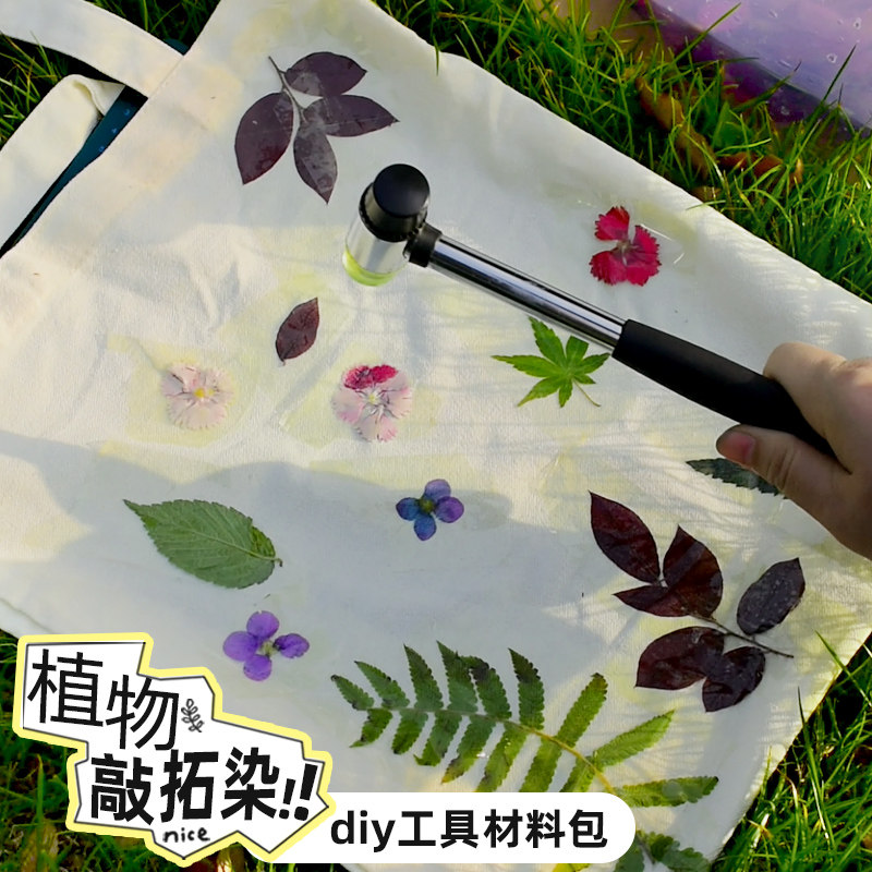 儿童DIY植物敲拓染材料工具套装儿童帆布包鲜花方巾锤幼儿园手工