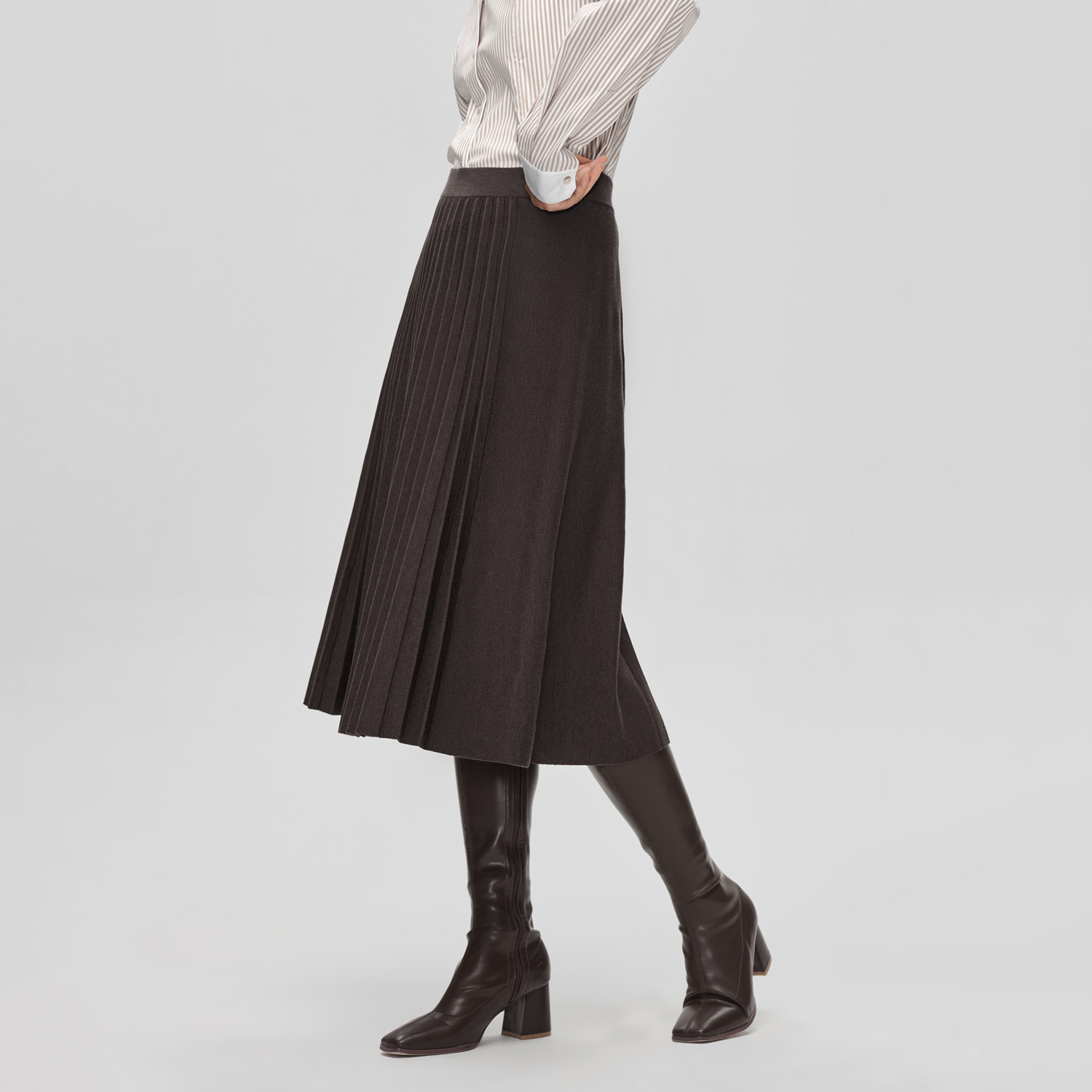 【可机洗黄金羊毛】OVV秋冬新款女装A字百褶中长款半身裙