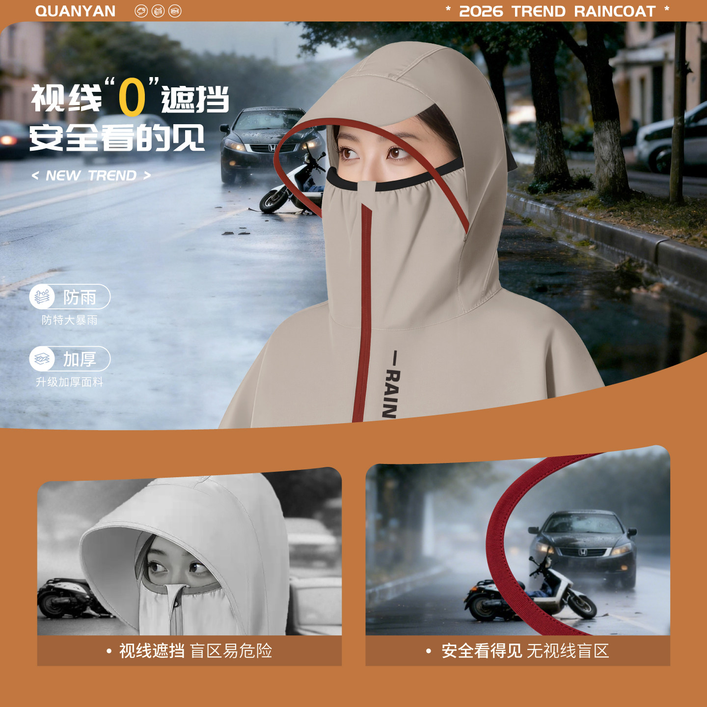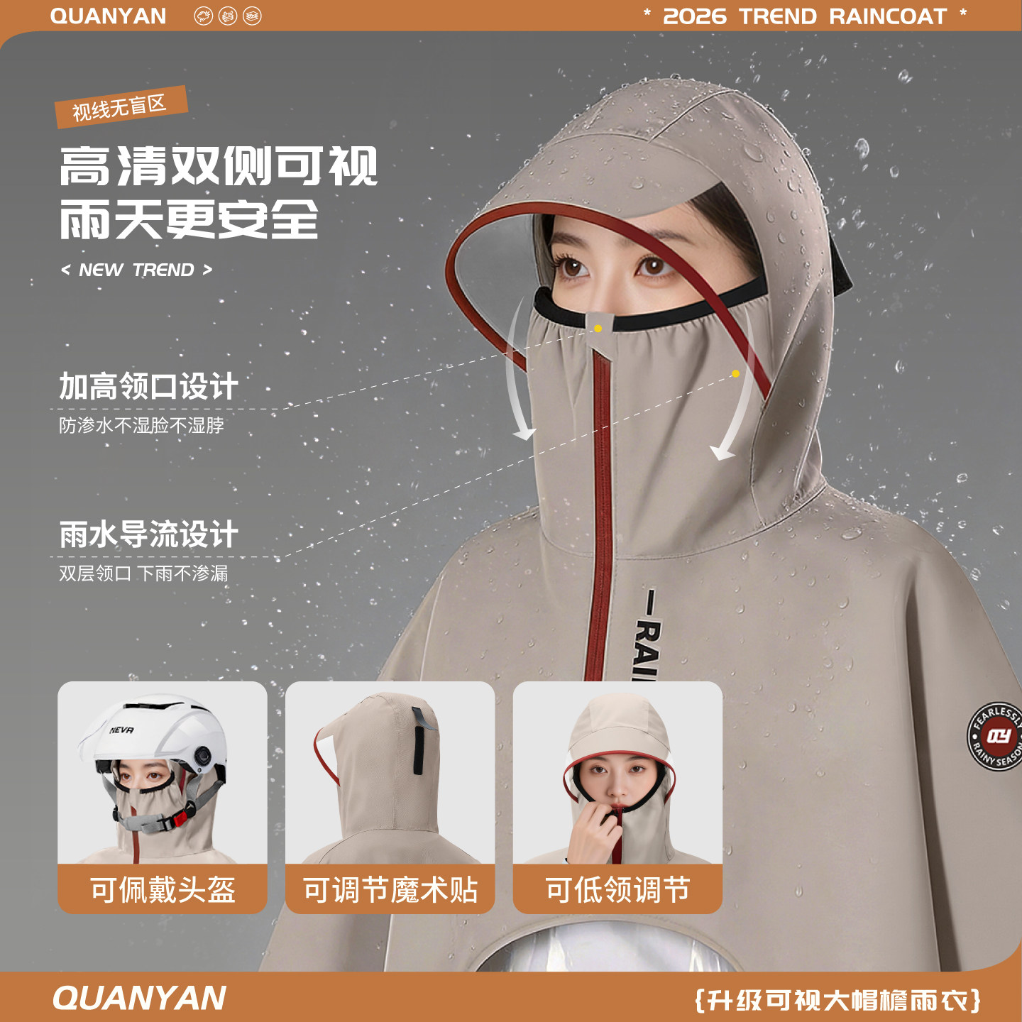 高领拉链领口+方便易穿脱+骑行不湿脸