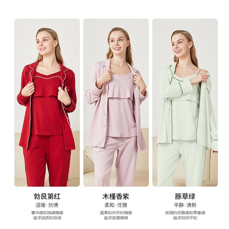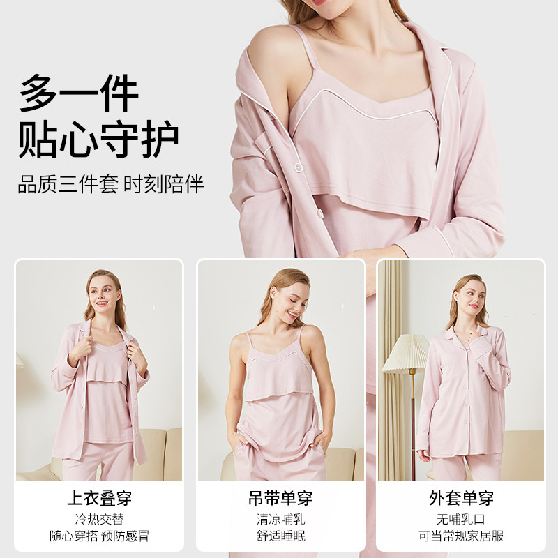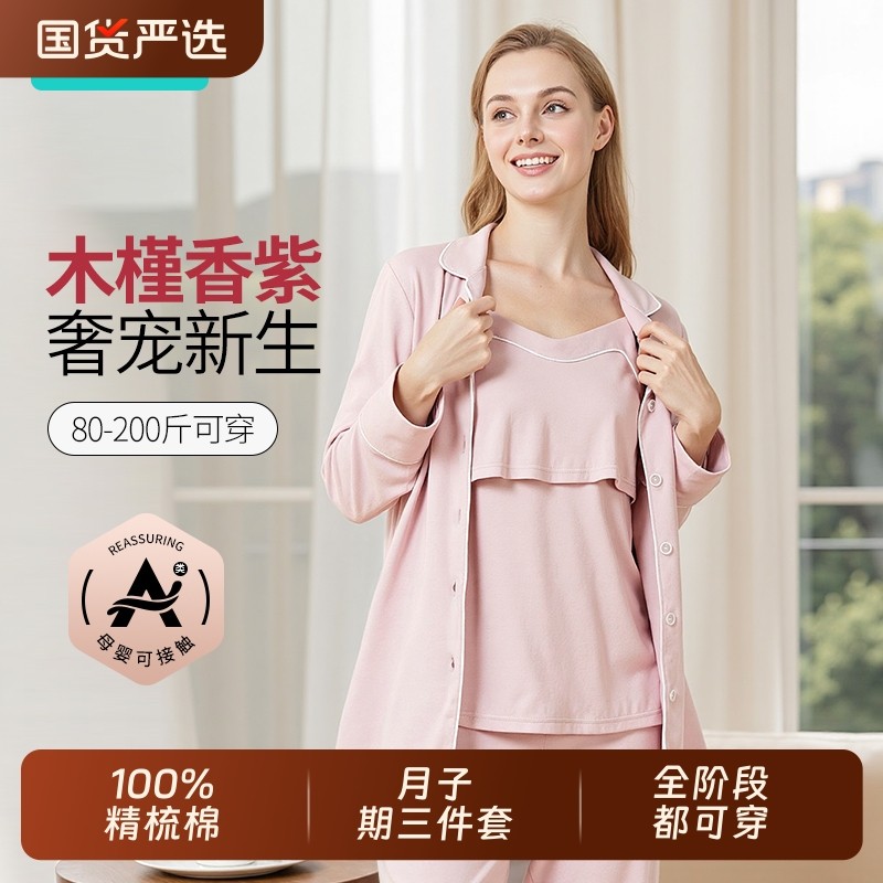 秋冬季空气棉月子服三件套春秋纯棉产后孕妇睡衣哺乳产妇12月份11