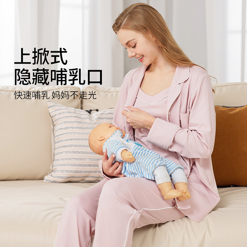 带胸垫月子服秋冬纯棉产后产妇11月份12孕妇家居服哺乳睡衣春秋季