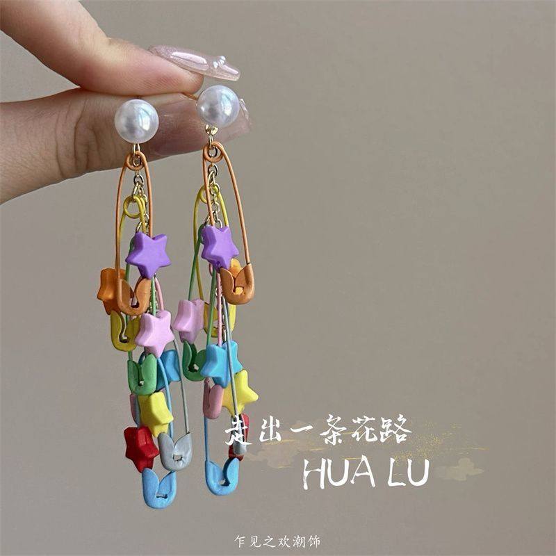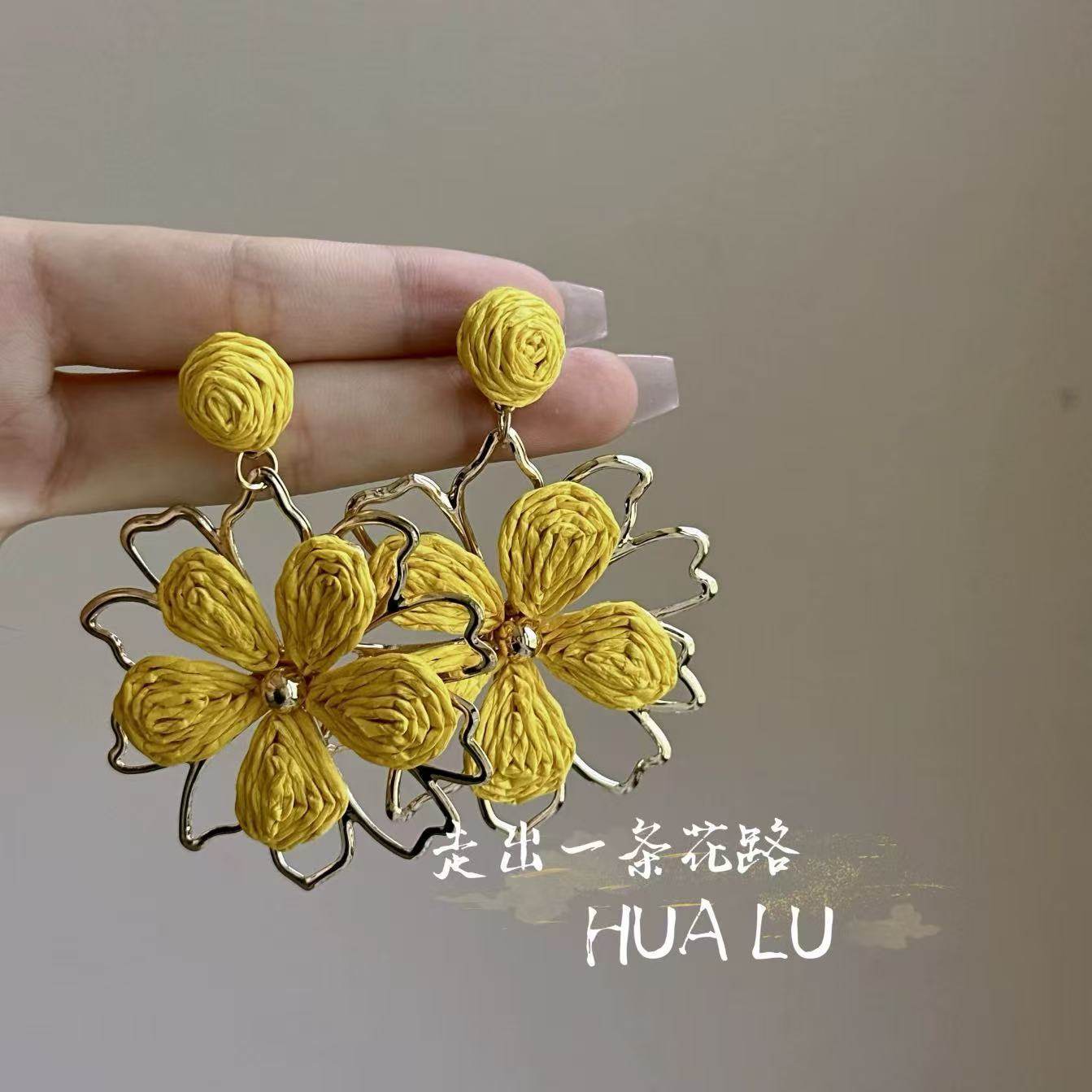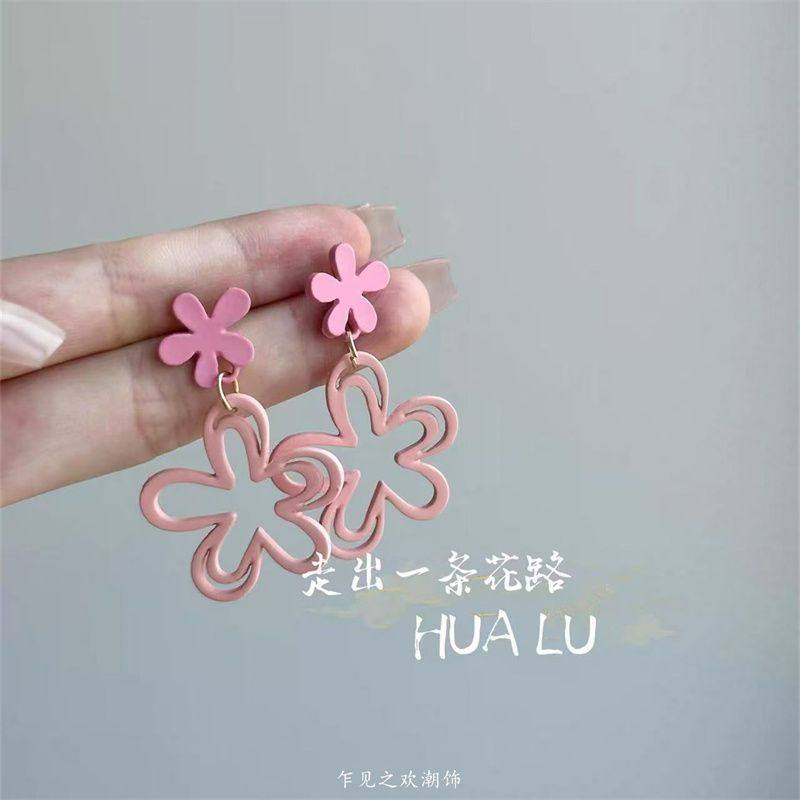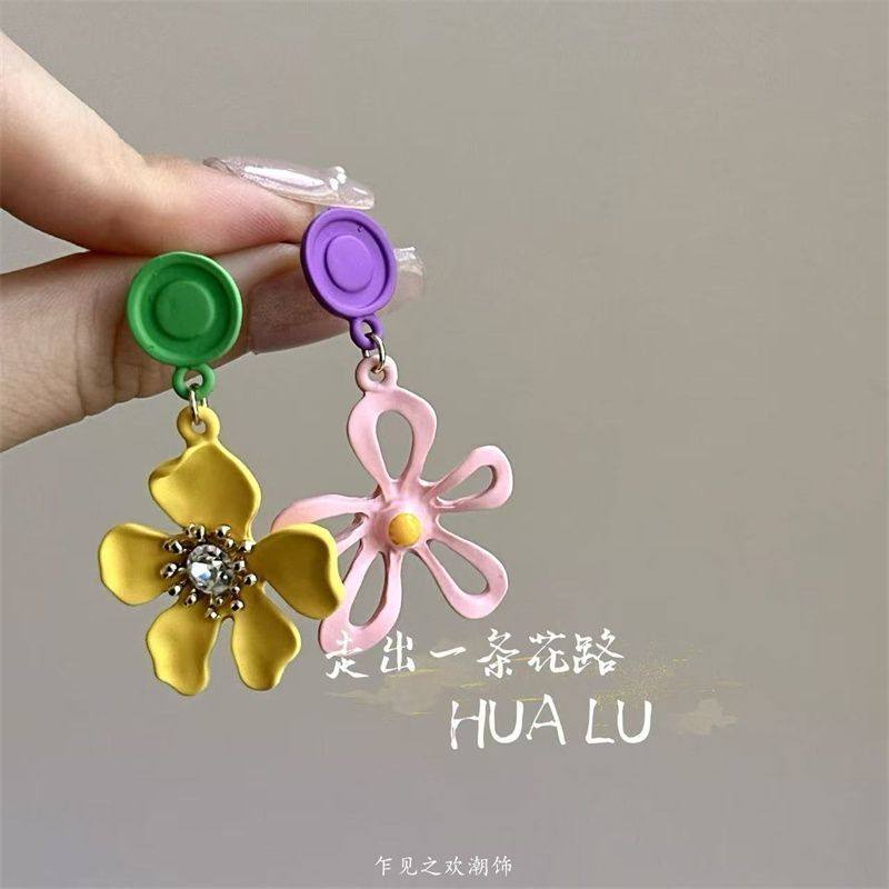 撞色小众设计不对称花朵耳环甜美清新田园度假风耳钉2025新款爆款