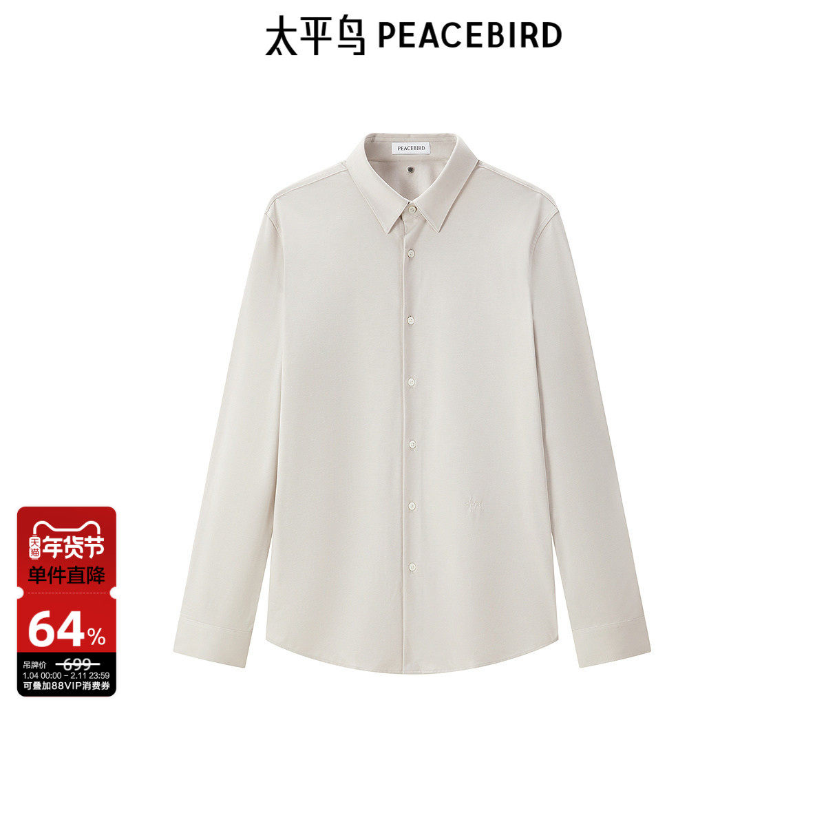 太平鸟男装 长袖衬衫男秋季商务休闲修身刺绣翻领衬衣男