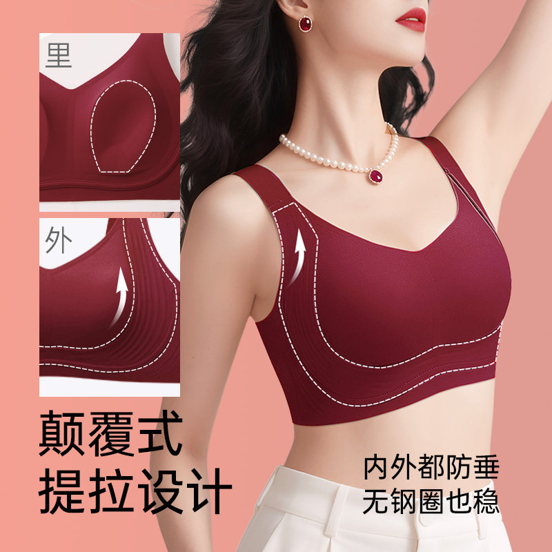 润微提拉防下垂大胸显小红色本命年内衣女无痕收副乳美背薄款文胸