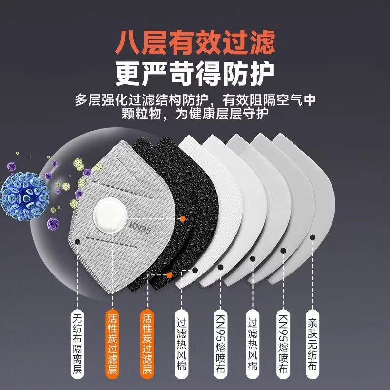 KN95口罩防尘透气易呼吸工业防护粉尘雾霾打磨活性炭带阀电焊口罩