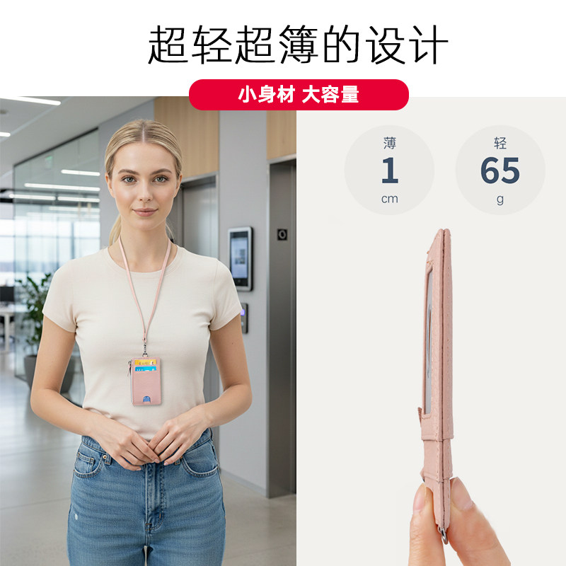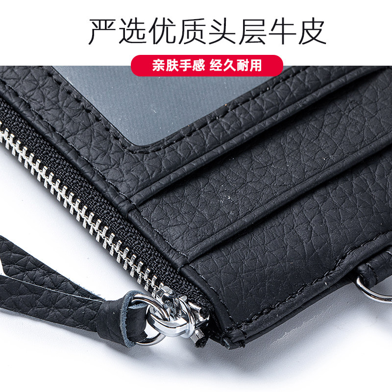 丹麦vanlemn工作证卡套带挂绳工牌保护套高档卡包多功能挂脖证件包饭卡真皮门禁卡套夹子高级感双卡挂脖式
