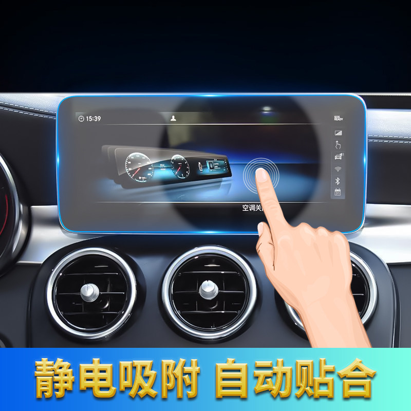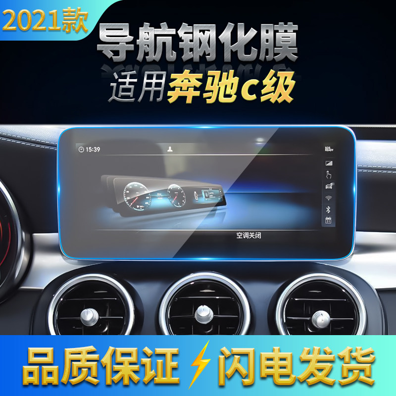 适用2021款奔驰C级C200/260导航钢化膜 中控仪表盘高清防刮花贴膜