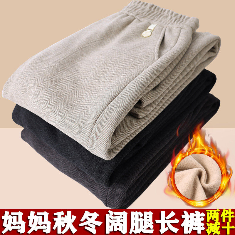 雅鹿妈妈裤子春秋冬款毛呢休闲阔腿裤加绒加厚中老年女裤奶奶长裤