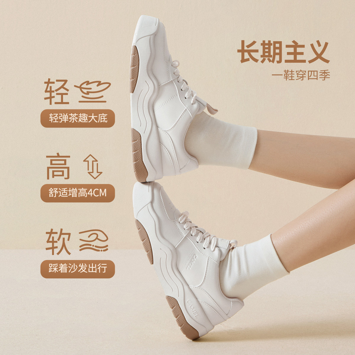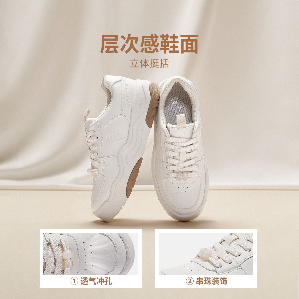 骆驼女鞋2026春季新款休闲运动鞋厚底增高小白鞋滑板鞋系带板鞋女
