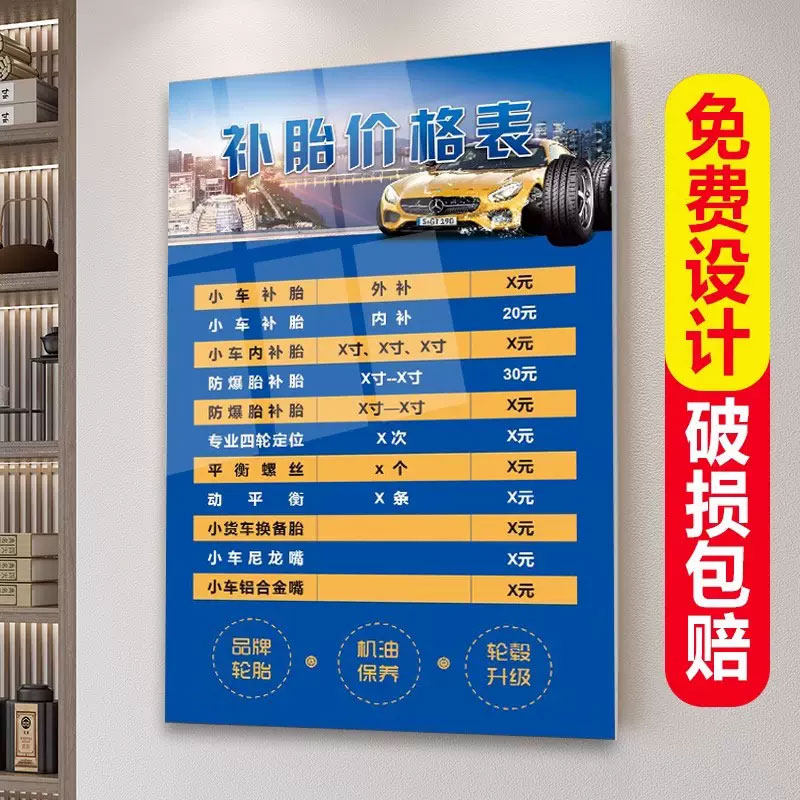 价目表定制设计汽修美容维修洗车店广告价格表汽车补胎换胎保养海报墙贴服务项目价钱牌自粘汽修厂轮胎标价牌