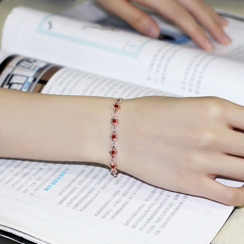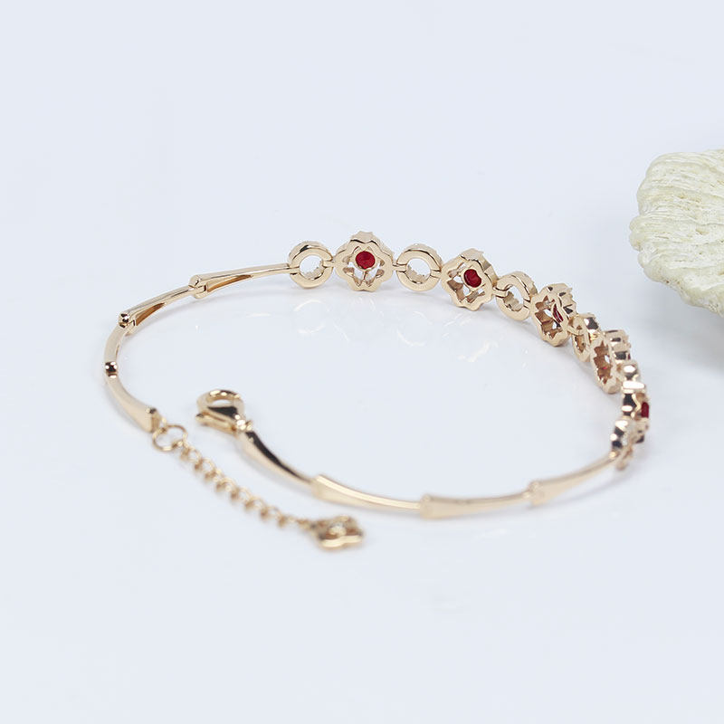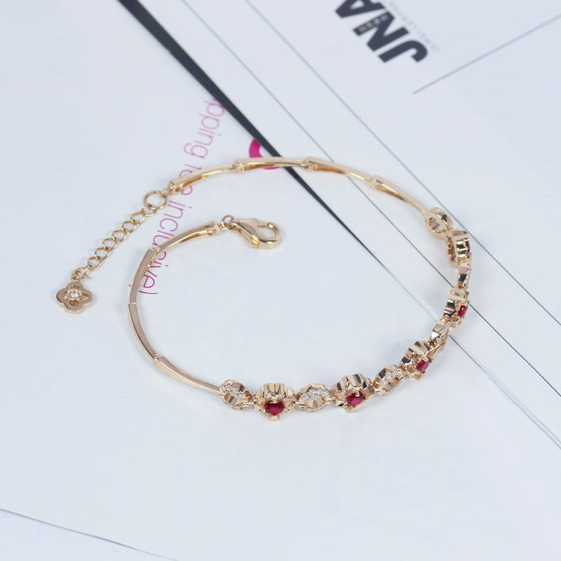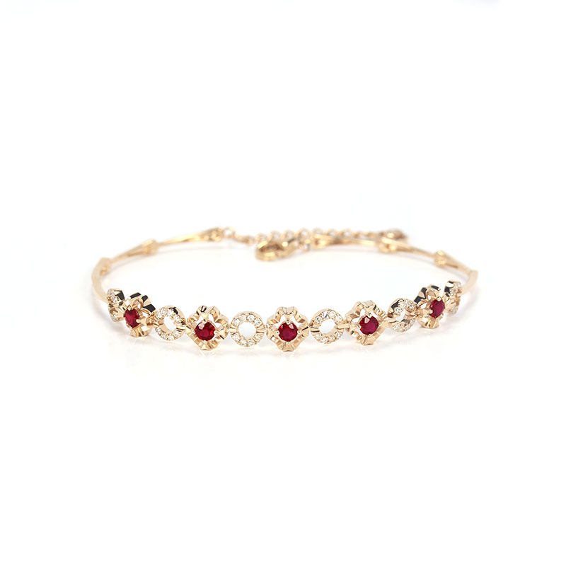 厚实18K玫瑰金天然鸽血红宝石手链 不翻转深正红镶钻石彩金手镯女