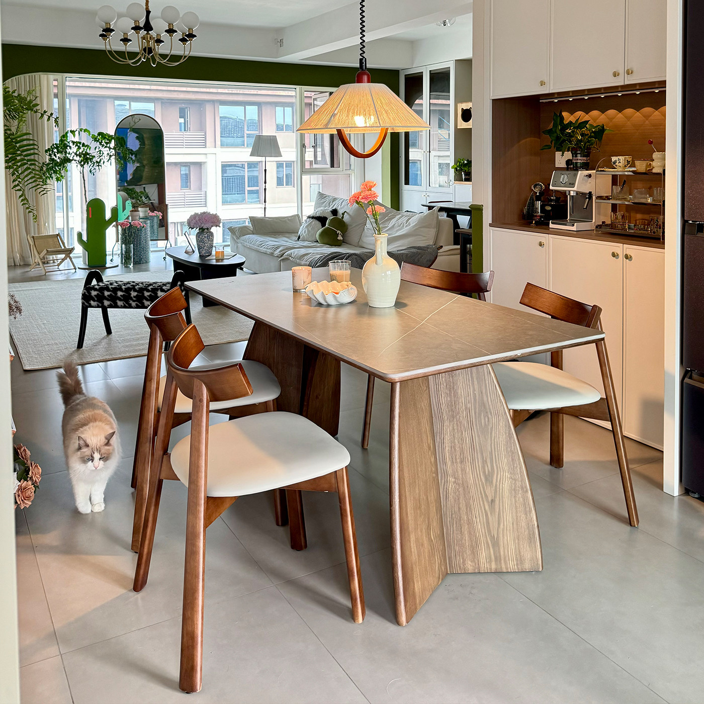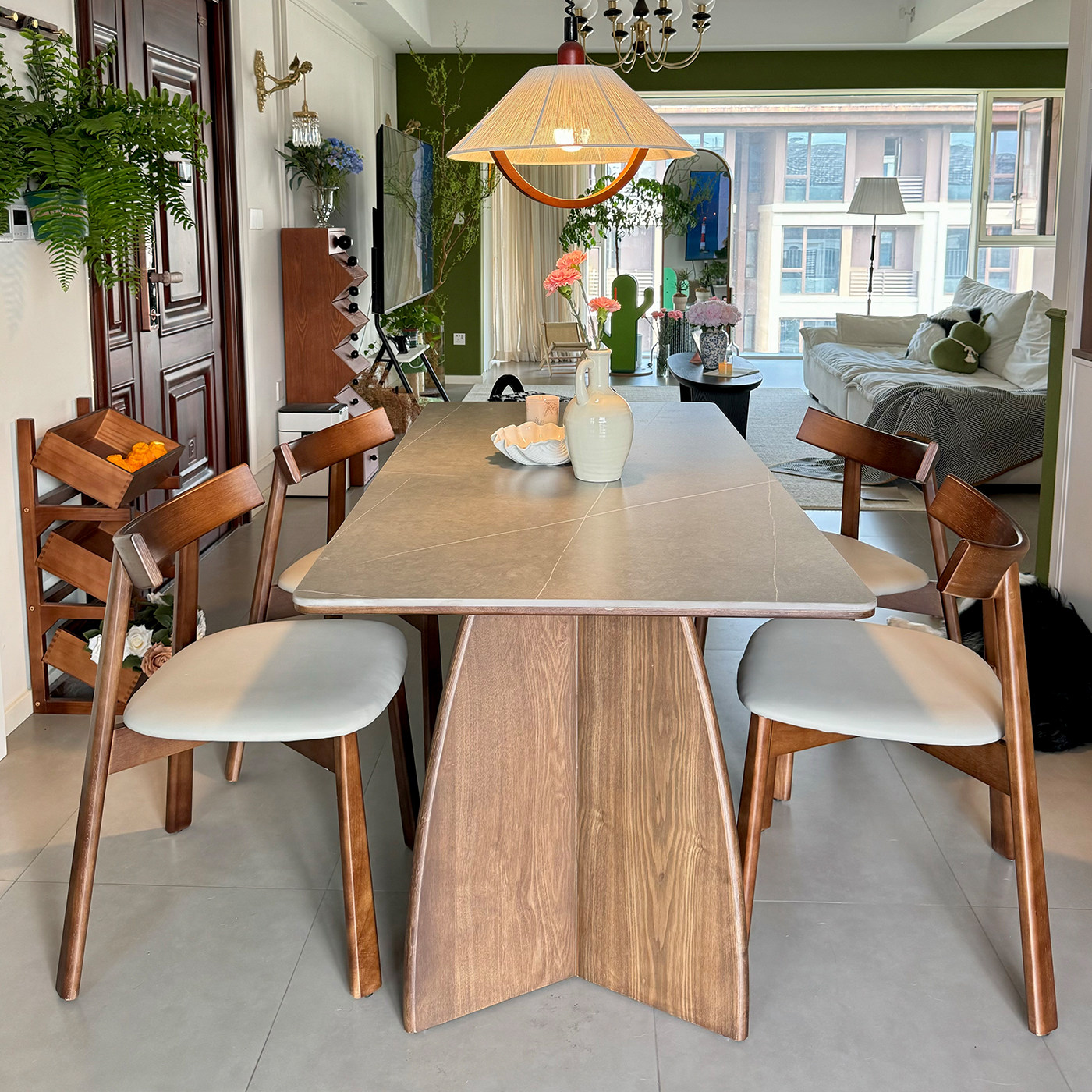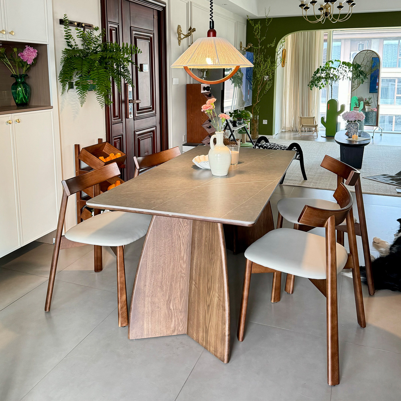 实木餐桌2025新款家用高级感现代简约侘寂风长方形玛奇朵岩板餐桌