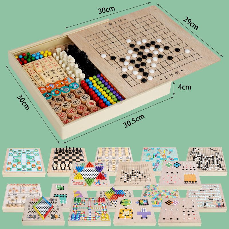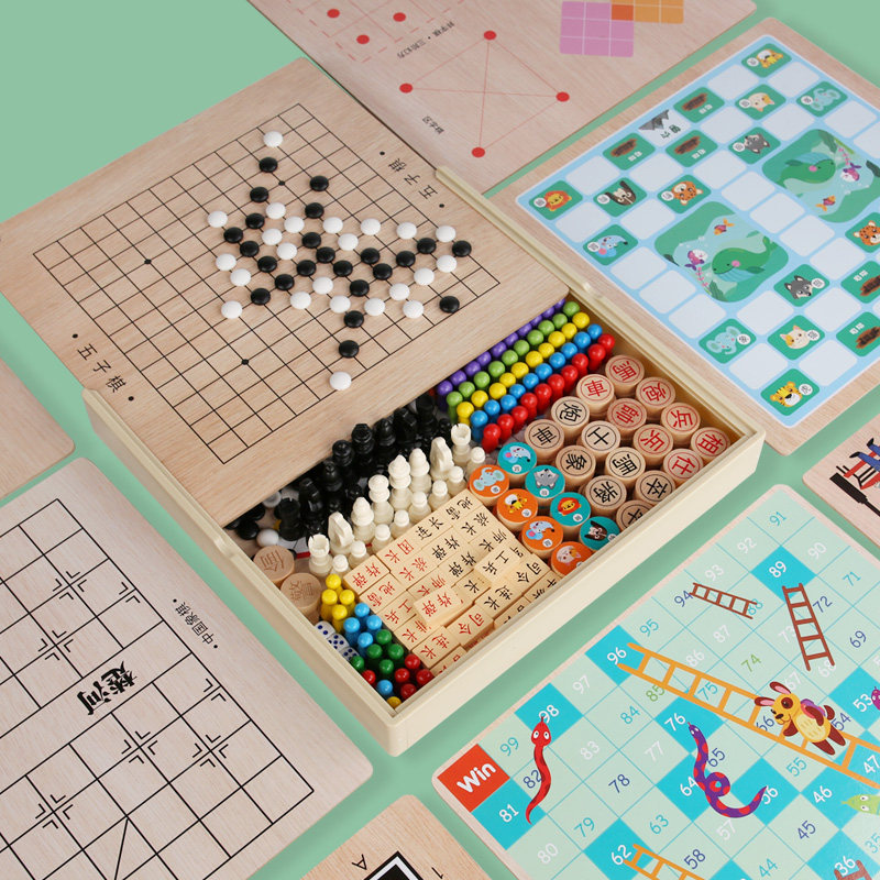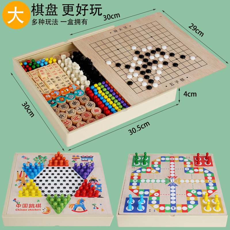 儿童多功能棋跳棋五子棋飞行棋套装小学生教学教具木制玩具礼物