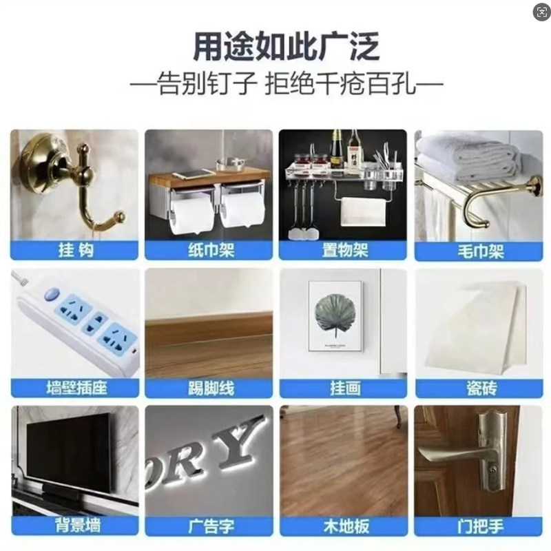 强力高粘免钉胶高粘度粘墙面金属墙壁镜子瓷砖踢脚线卫生间置物架