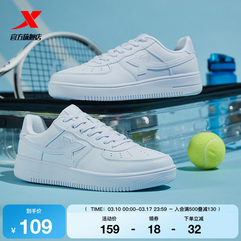 特步空军一号情侣板鞋男鞋春季潮流休闲鞋运动鞋女鞋子厚底小白鞋