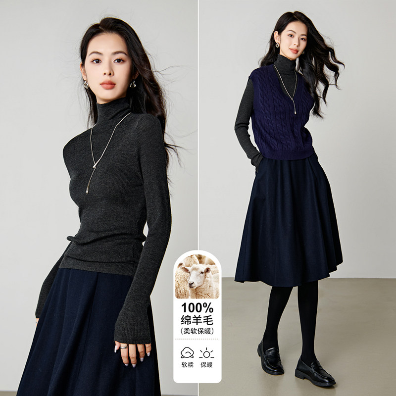 晚白2025年秋冬高领打底衫上衣修身百搭气质套头100%绵羊毛衫女